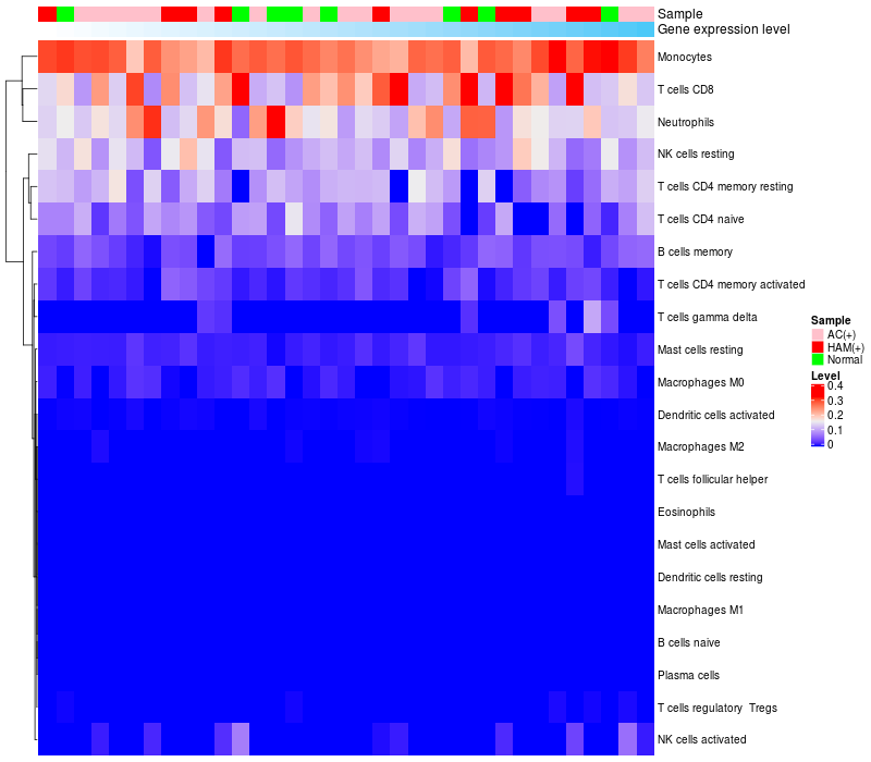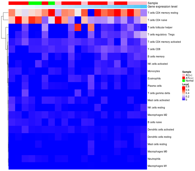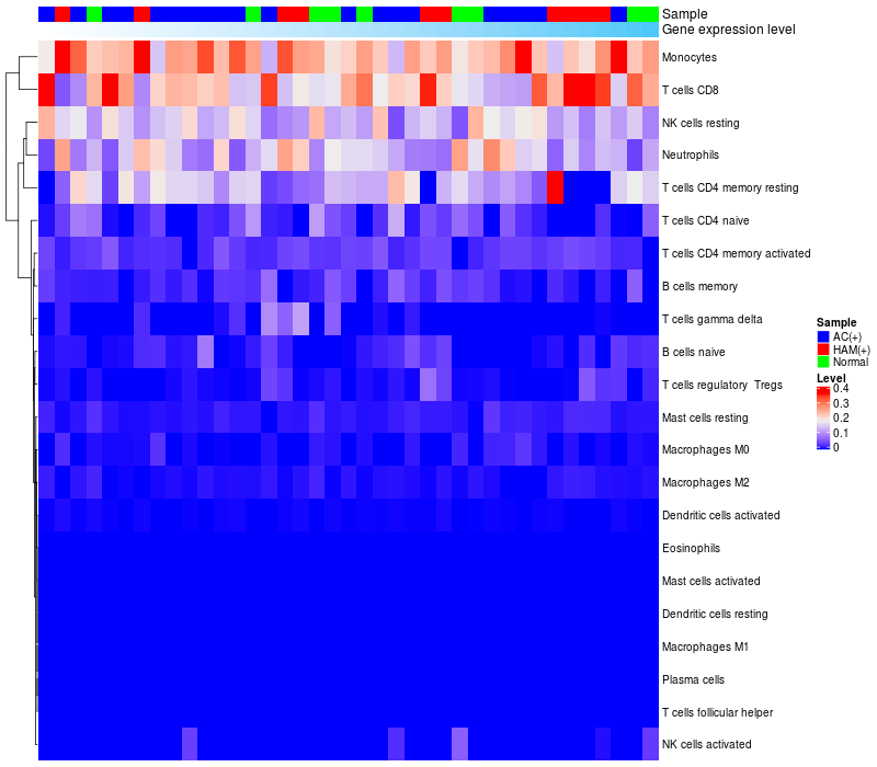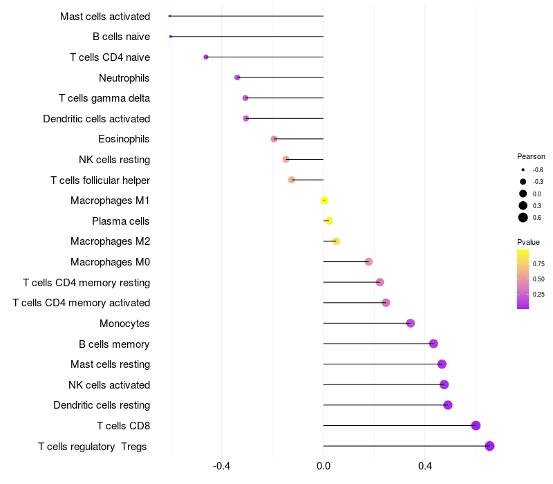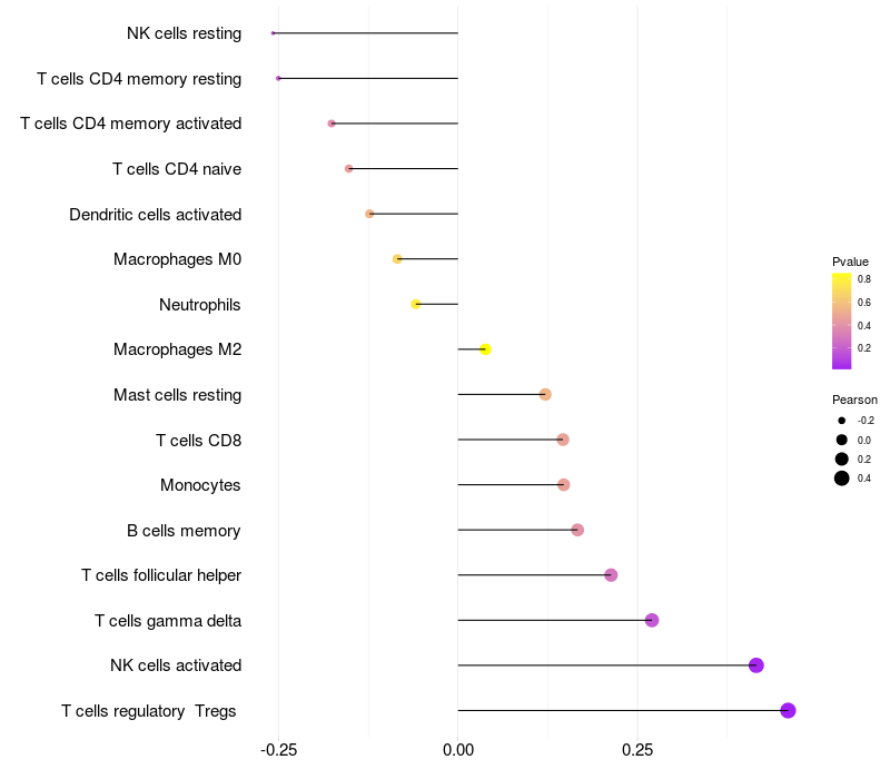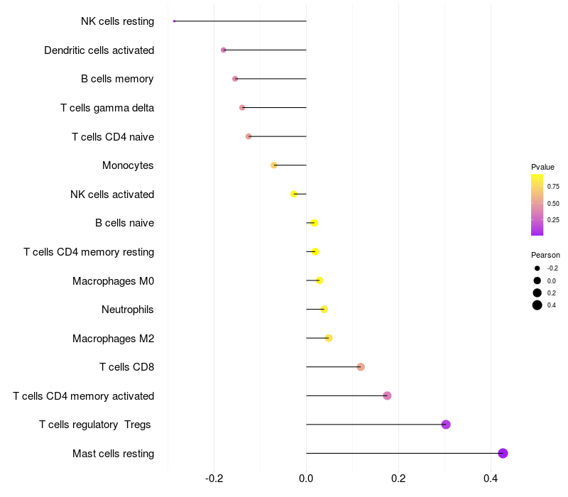 Lollipop of DOK1 expression and immune infiltrating cell level correlation result in HTLV1+ samples