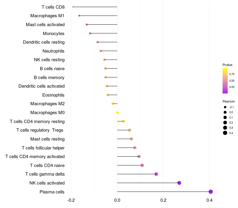 Relationship between gene expression and immune infiltrating cell level