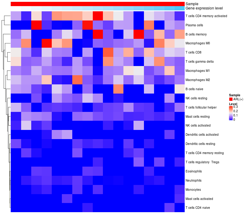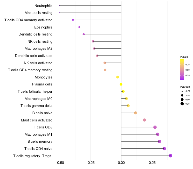 Relationship between gene expression and immune infiltrating cell level