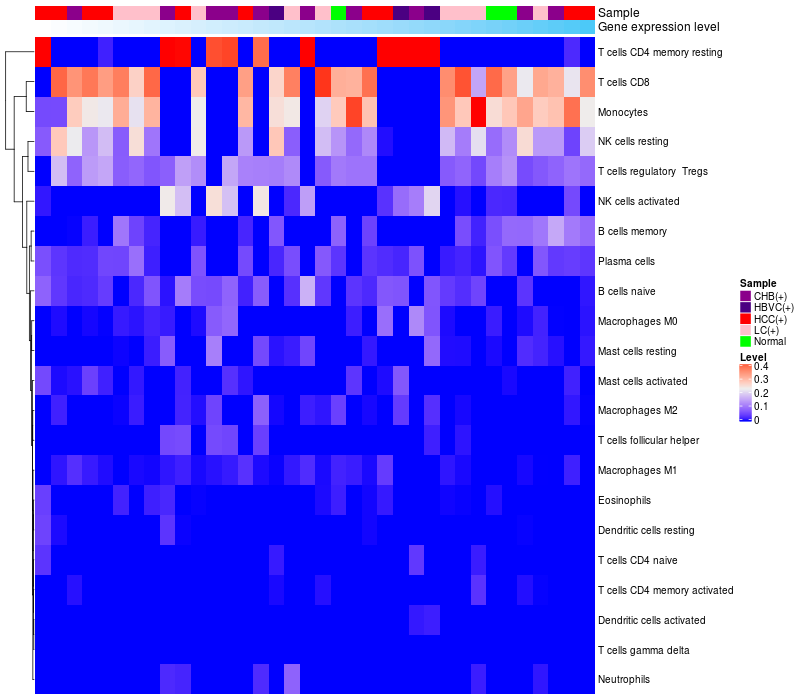 Liver hepatocellular carcinoma HCV (HBV+)(86), Liver hepatocellular carcinoma HCV (HBV-)(19), Liver hepatocellular carcinoma (HBV+)(209), Liver hepatocellular carcinoma (HBV+)(60), Paracancerous HCV (HBV+)(4), Paracancerous (HBV-)(28), Paracancerous (HBV+)(18) |