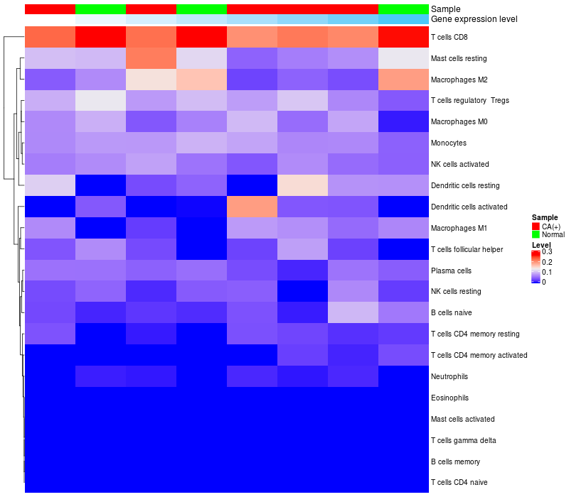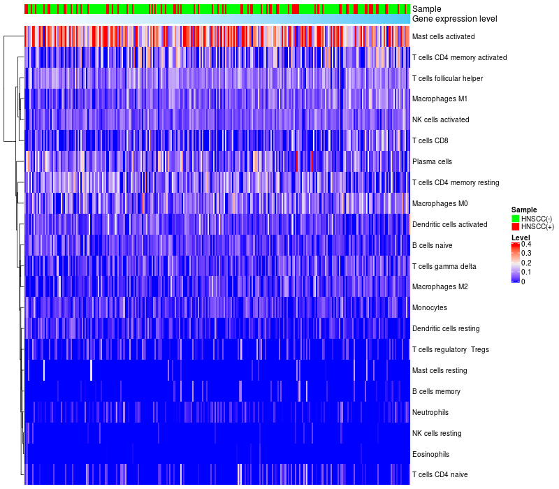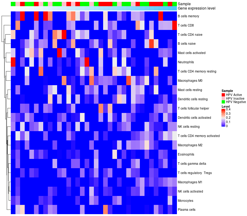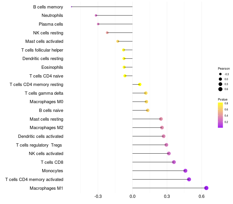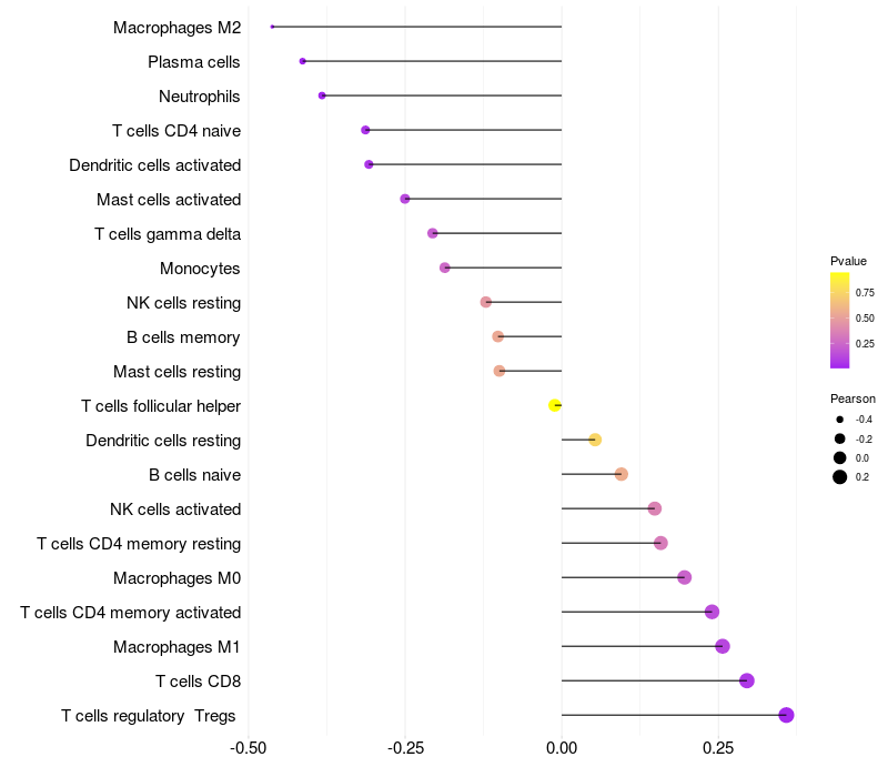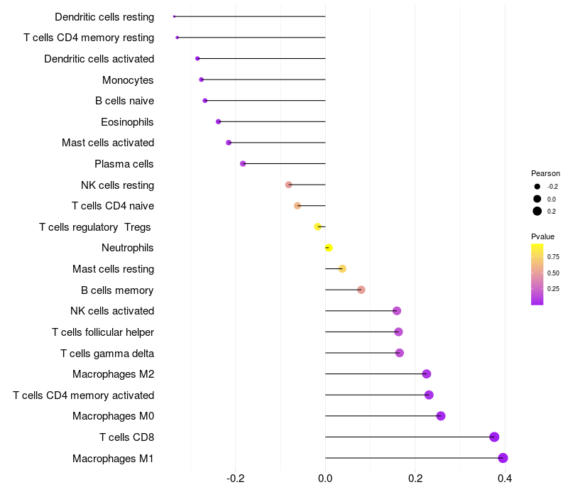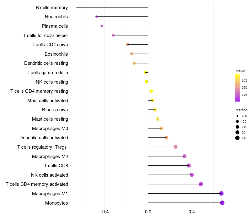 Lollipop of DRAM1 expression and immune infiltrating cell level correlation result in HPV+ samples