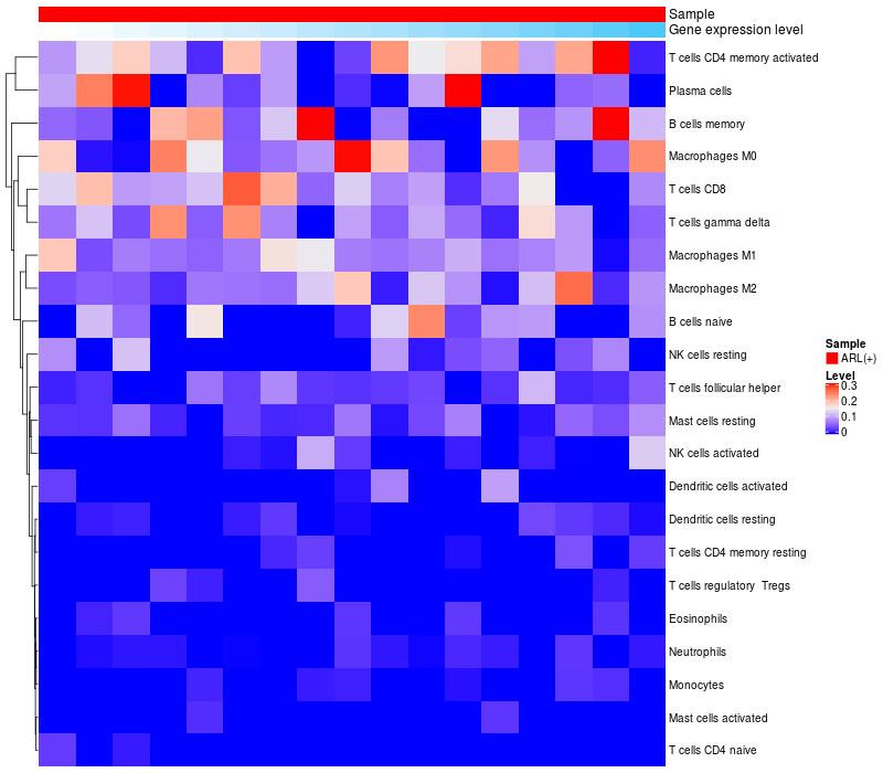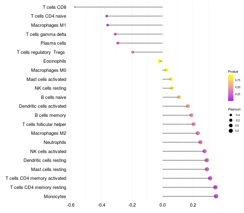 Relationship between gene expression and immune infiltrating cell level