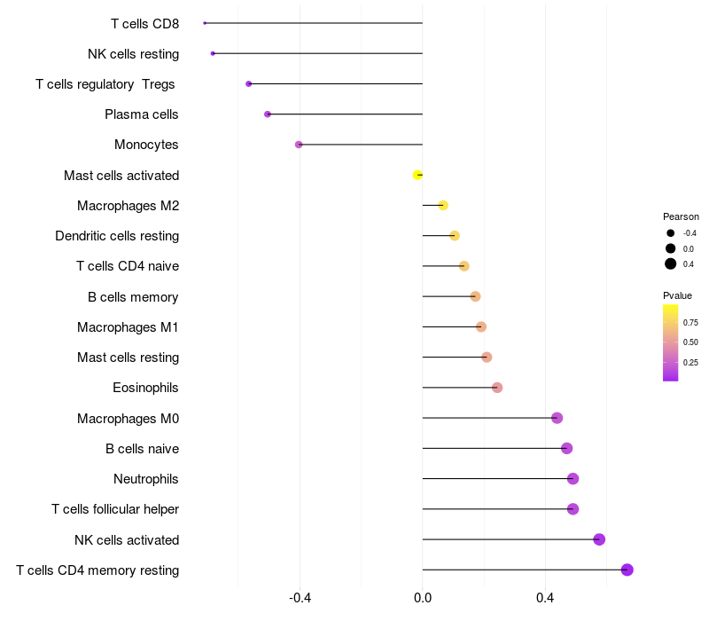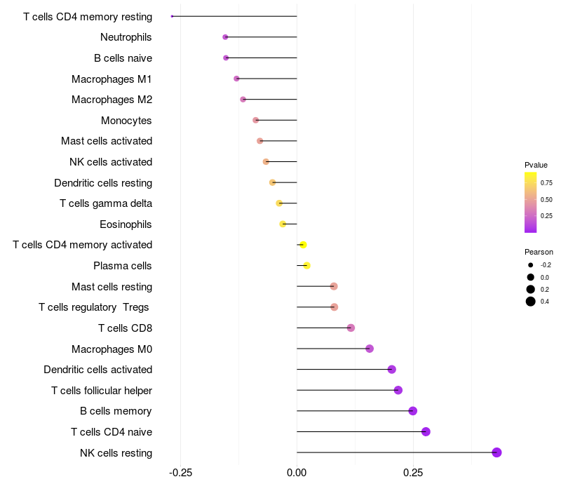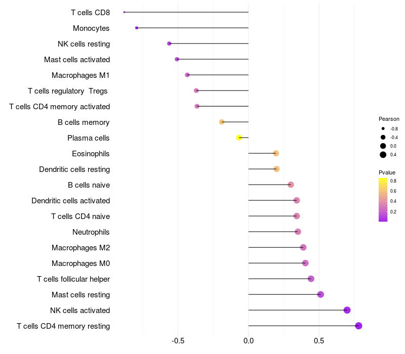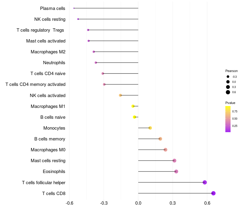 Lollipop of DRG2 expression and immune infiltrating cell level correlation result in HBV+ Liver cirrhosis samples