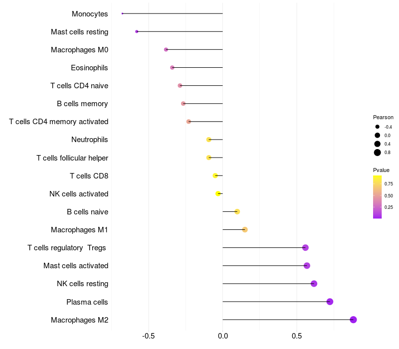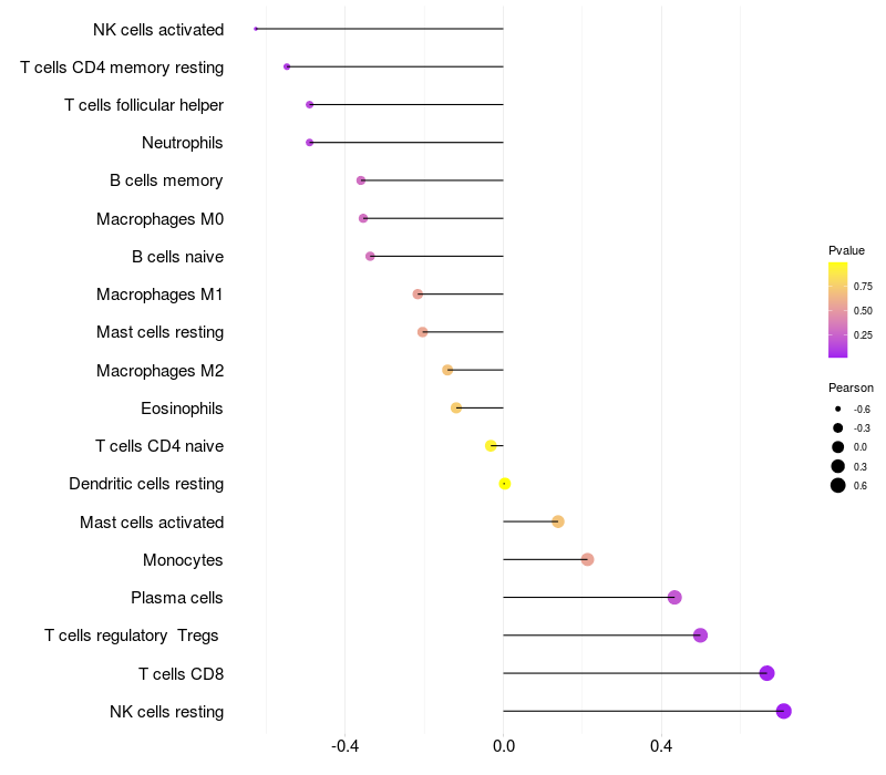 Lollipop of DSCAM expression and immune infiltrating cell level correlation result in HBV+ Liver cirrhosis samples