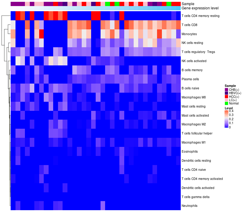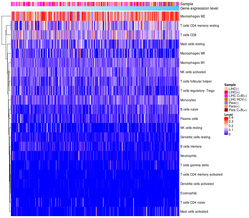 Liver hepatocellular carcinoma HCV (HBV+)(86), Liver hepatocellular carcinoma HCV (HBV-)(19), Liver hepatocellular carcinoma (HBV+)(209), Liver hepatocellular carcinoma (HBV+)(60), Paracancerous HCV (HBV+)(4), Paracancerous (HBV-)(28), Paracancerous (HBV+)(18) |