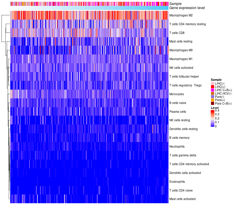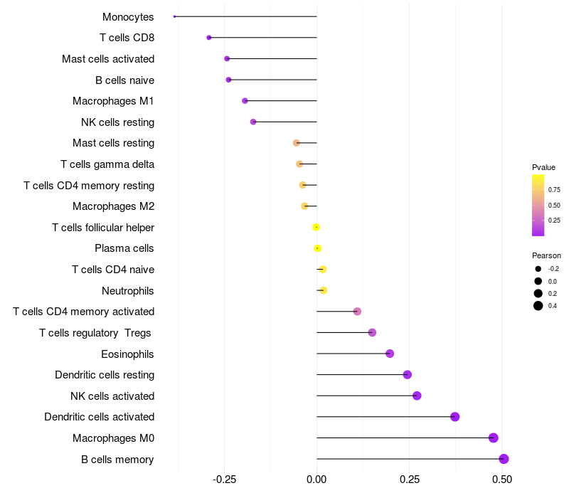 Relationship between gene expression and immune infiltrating cell level