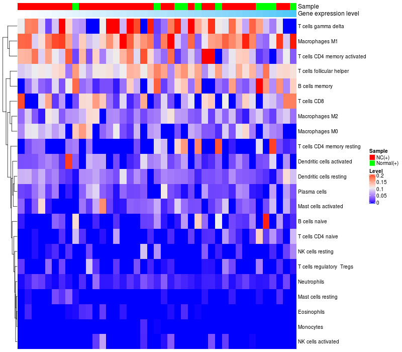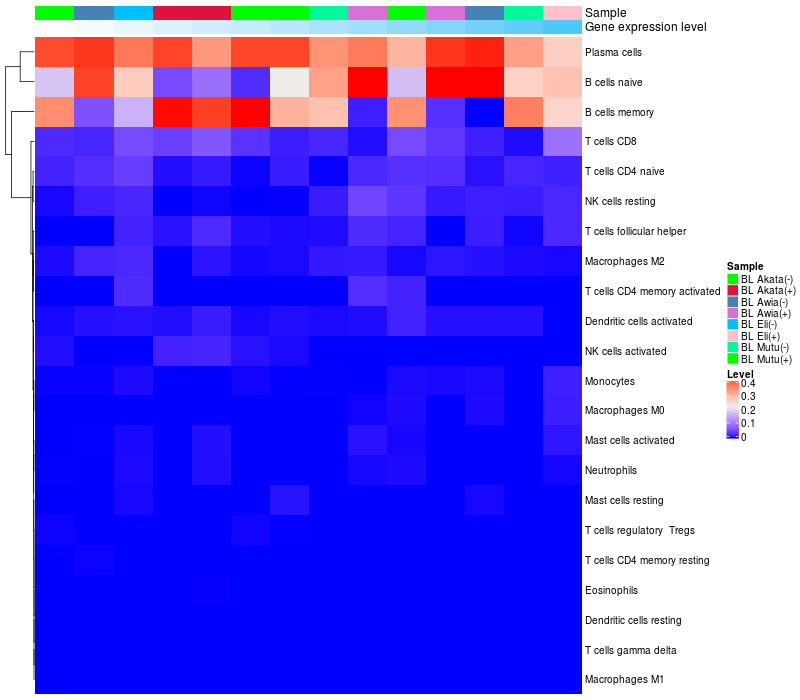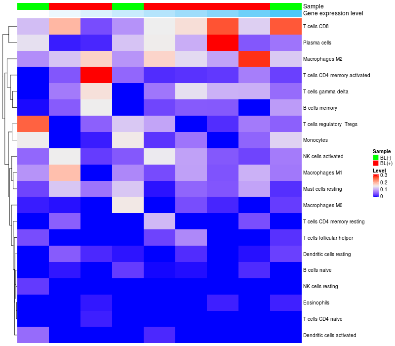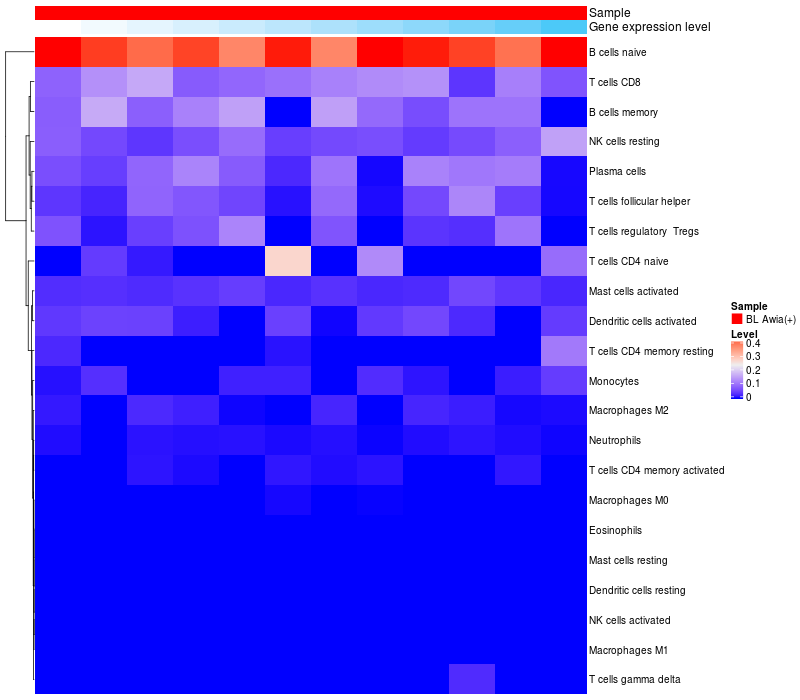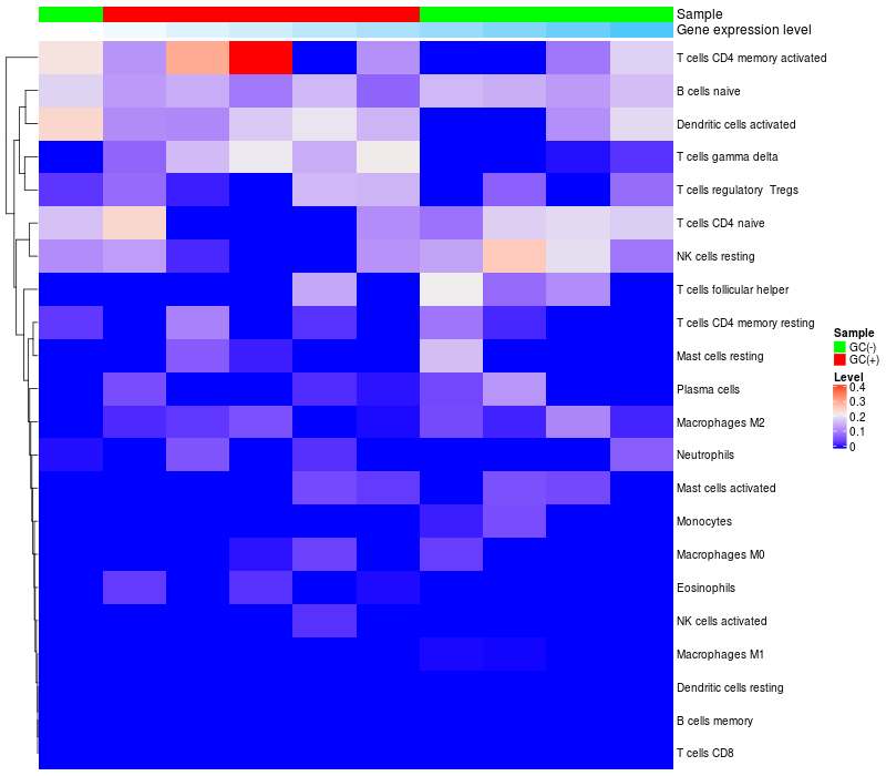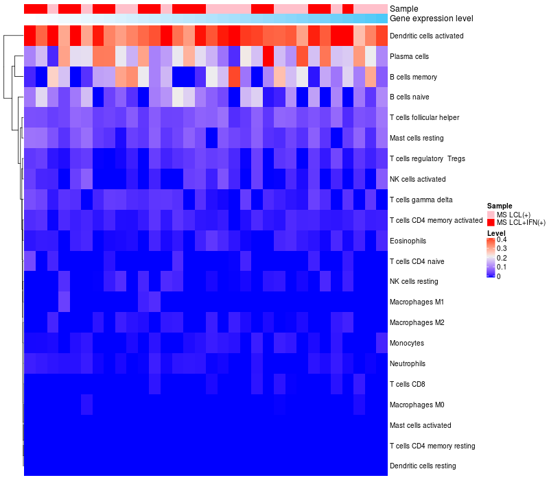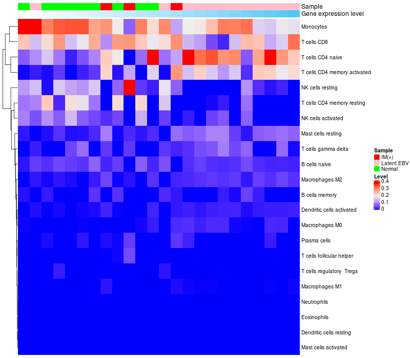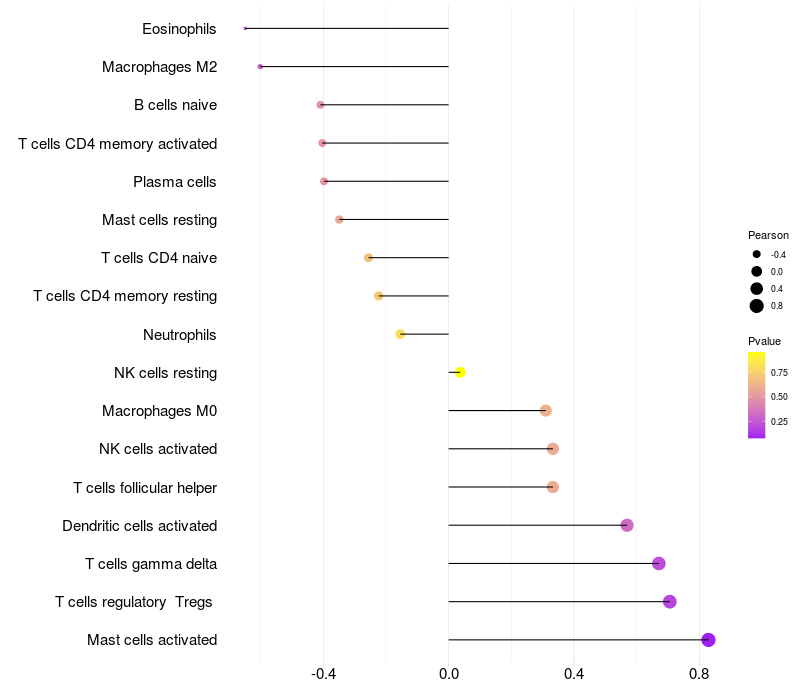 Lollipop of DTX3 expression and immune infiltrating cell level correlation result in EBV+ samples