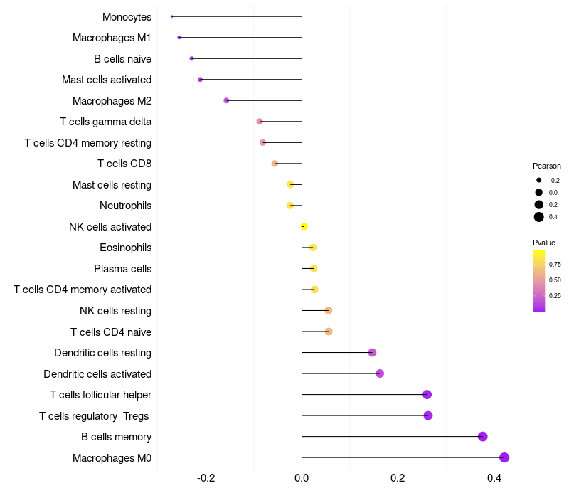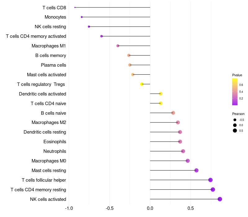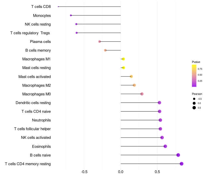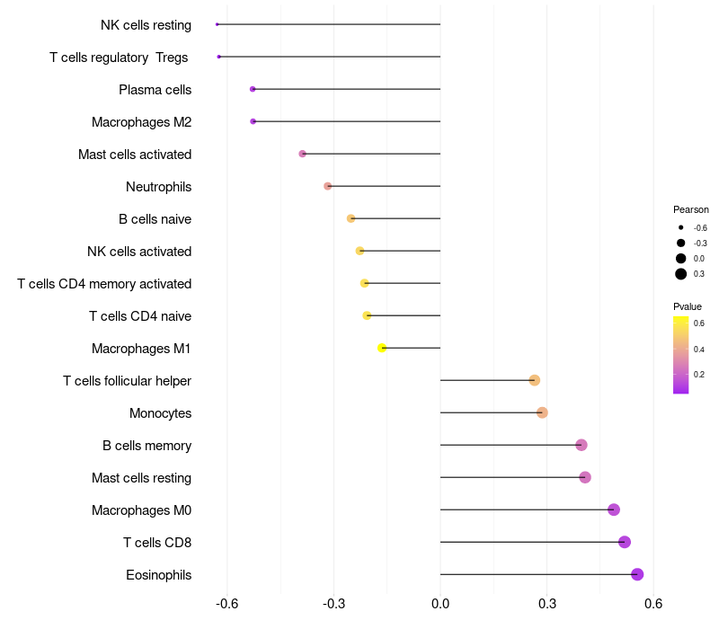 Lollipop of DTYMK expression and immune infiltrating cell level correlation result in HBV+ Liver cirrhosis samples