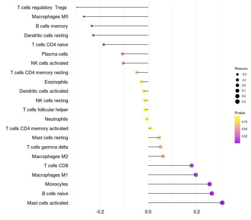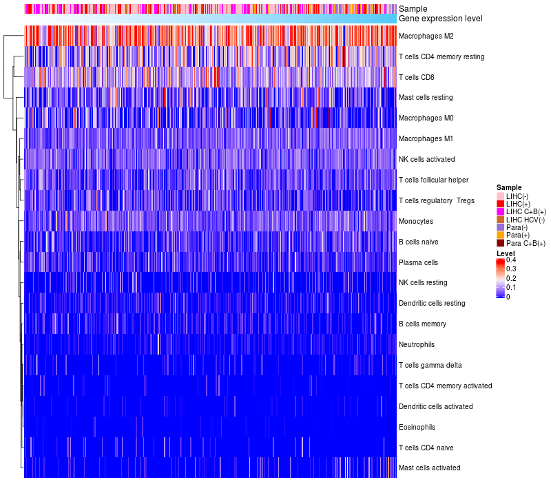 Relationship between gene expression and immune infiltrating cell level
