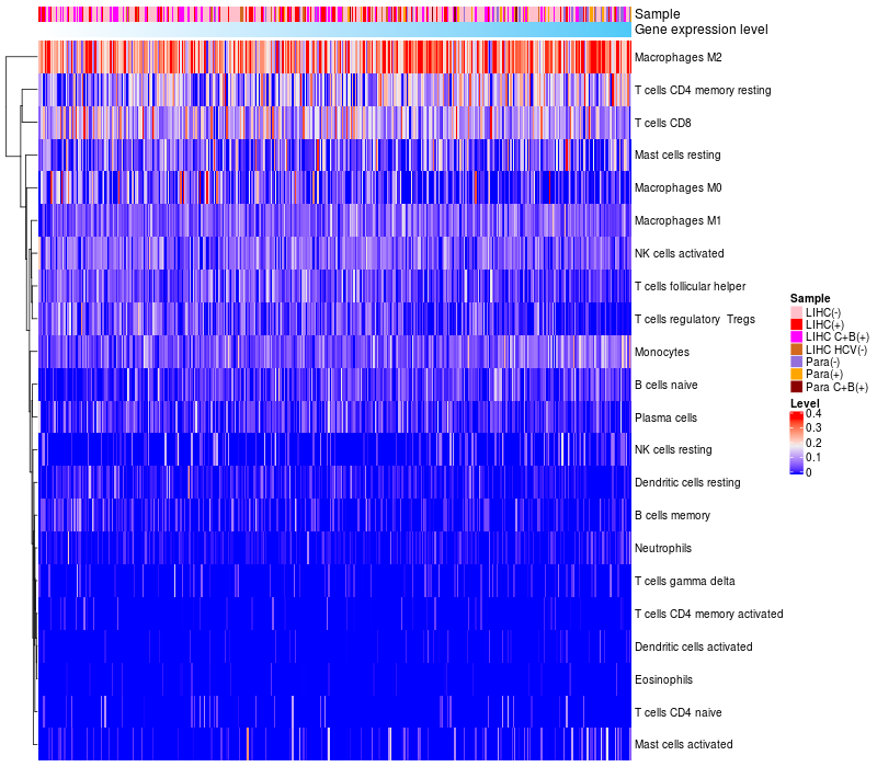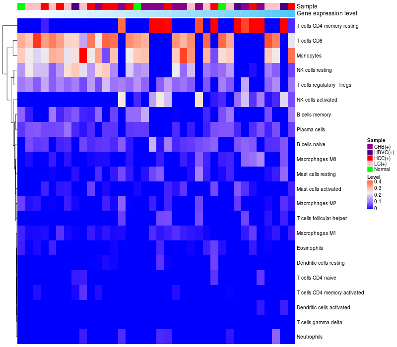 Relationship between gene expression and immune infiltrating cell level