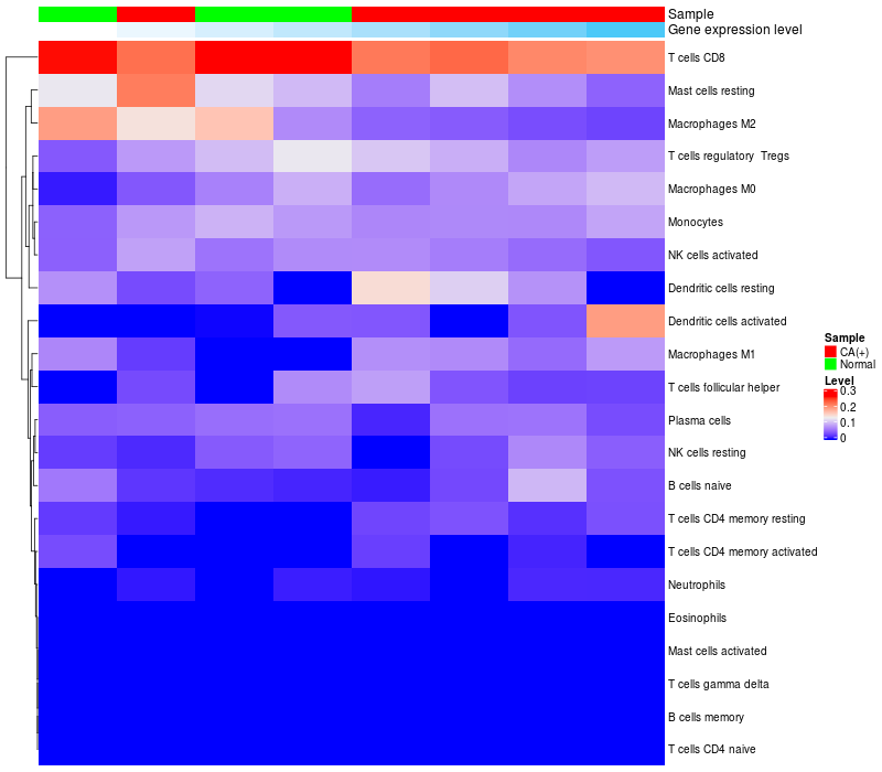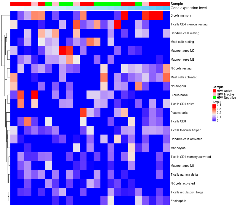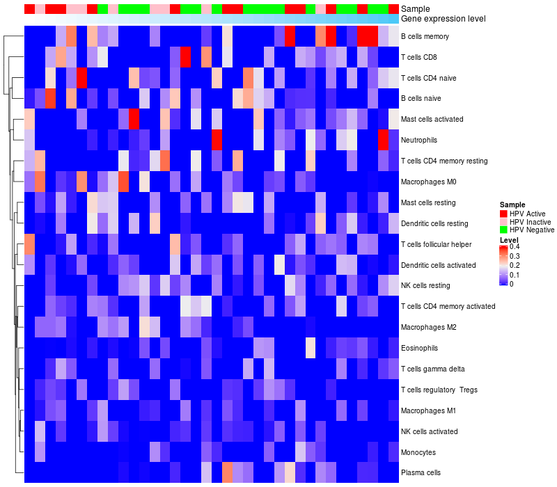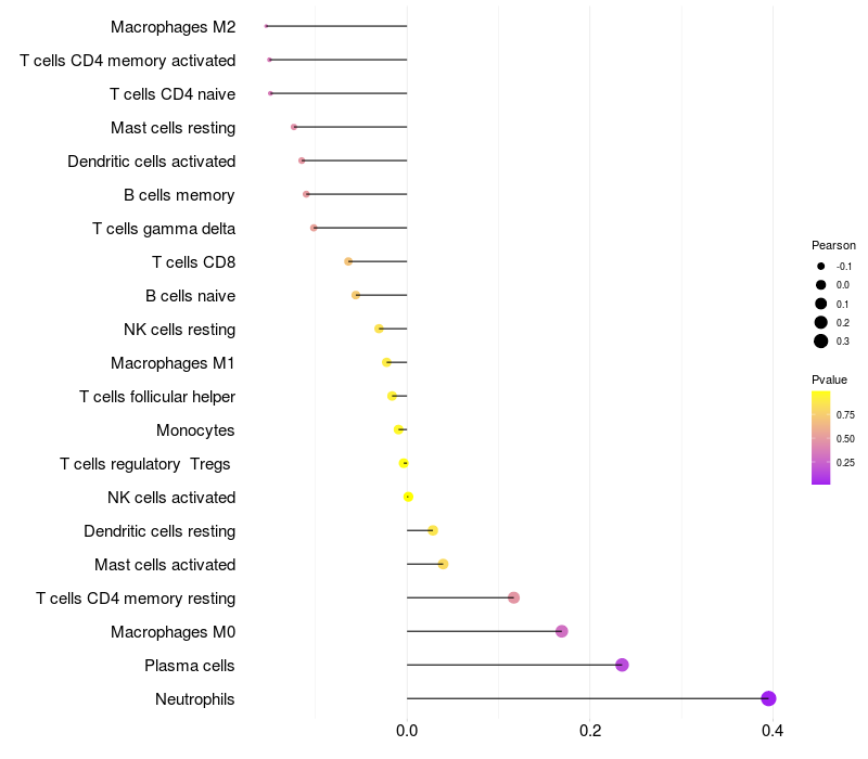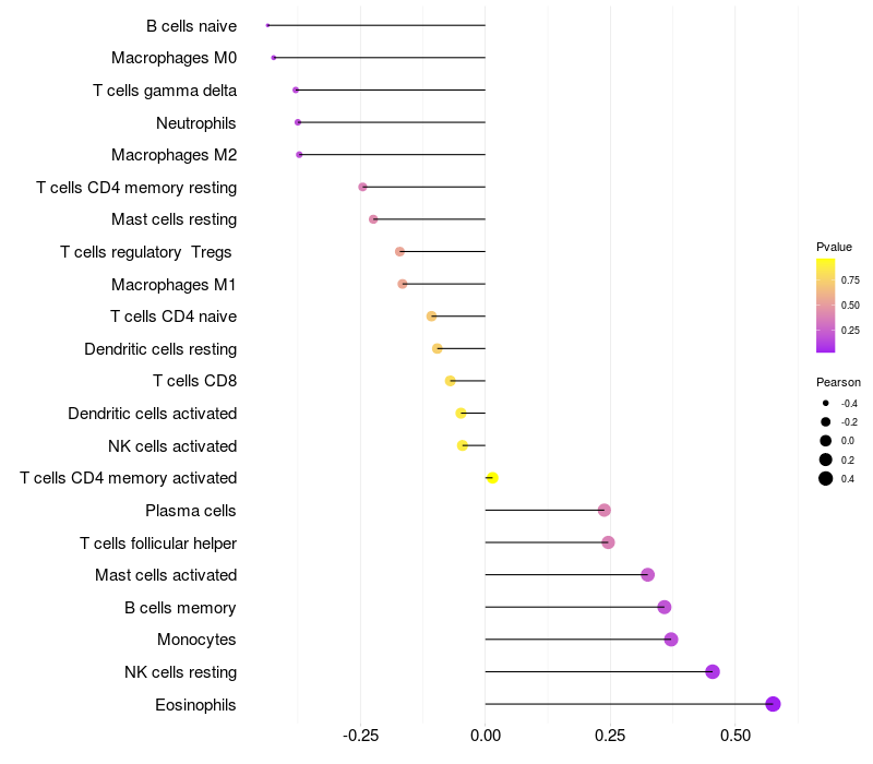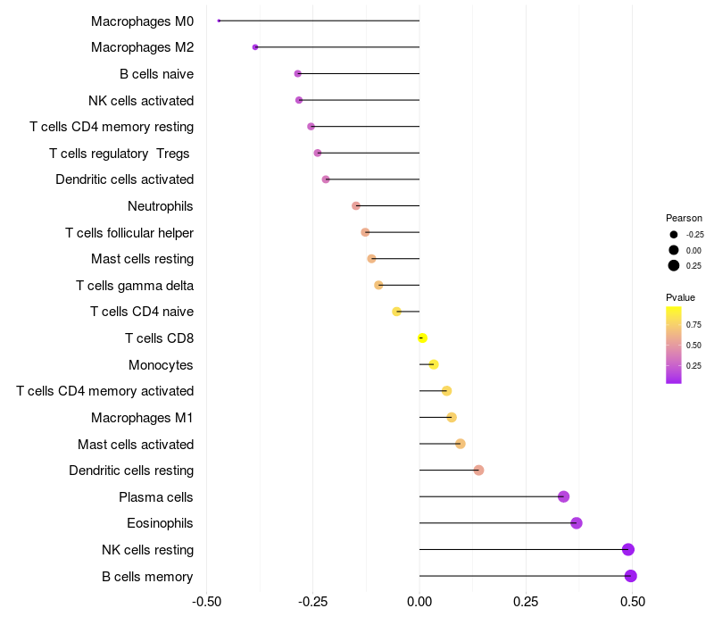 Lollipop of DUSP5 expression and immune infiltrating cell level correlation result in HPV+ samples