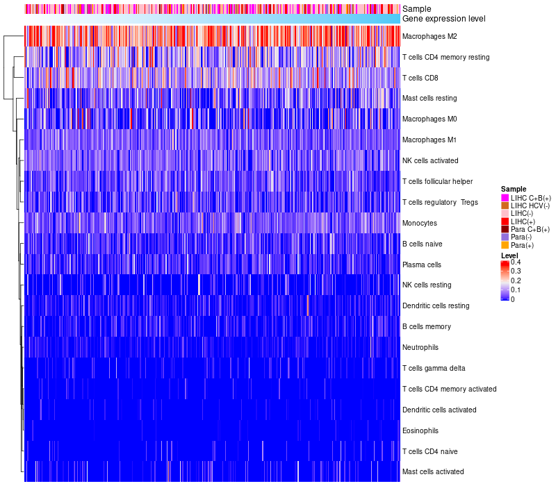 Relationship between gene expression and immune infiltrating cell level