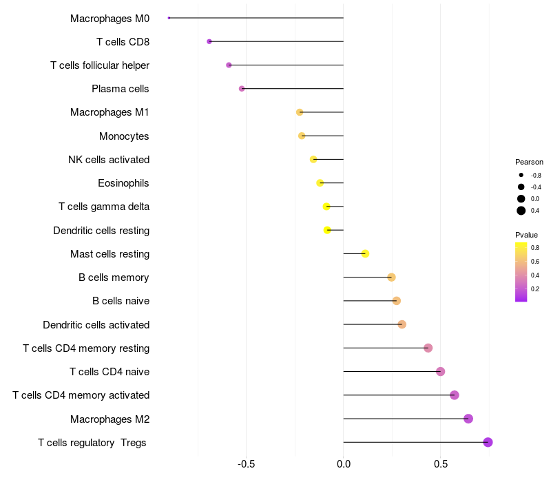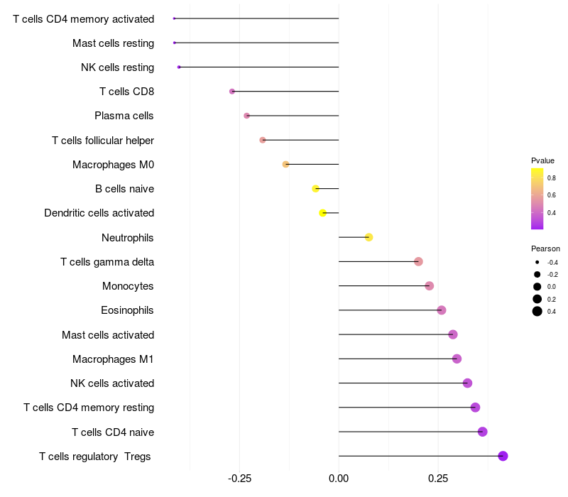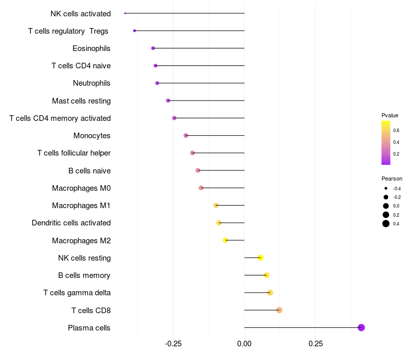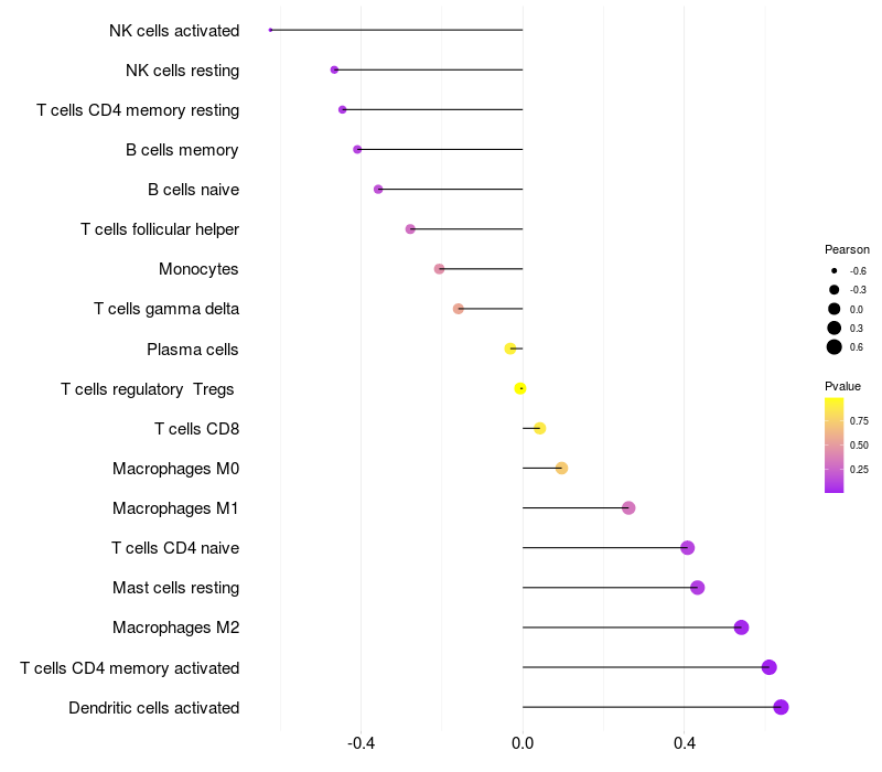 Lollipop of DYTN expression and immune infiltrating cell level correlation result in EBV+ samples