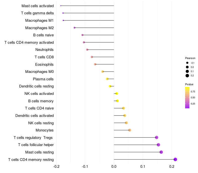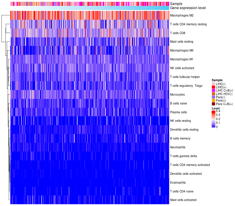 Relationship between gene expression and immune infiltrating cell level