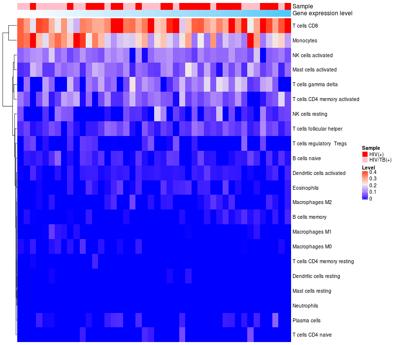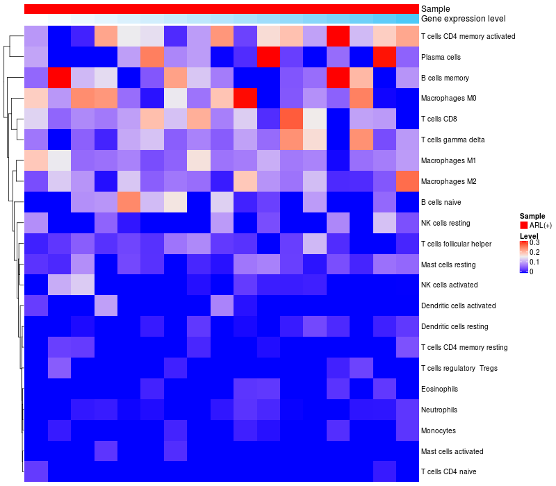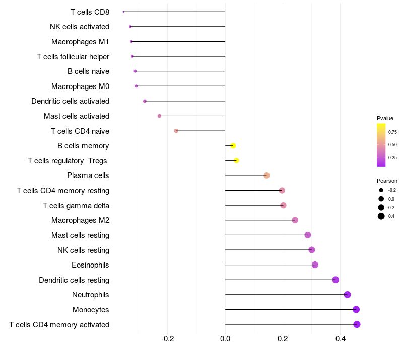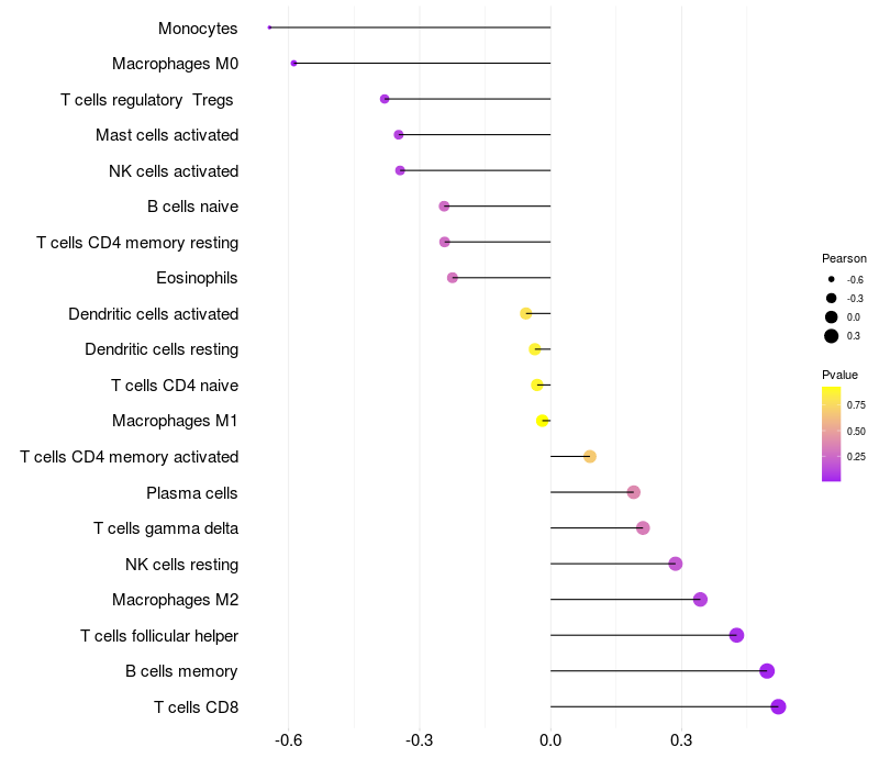 Relationship between gene expression and immune infiltrating cell level