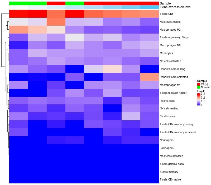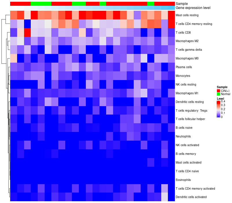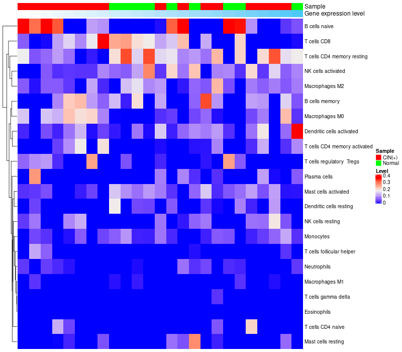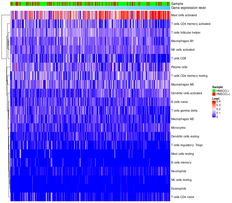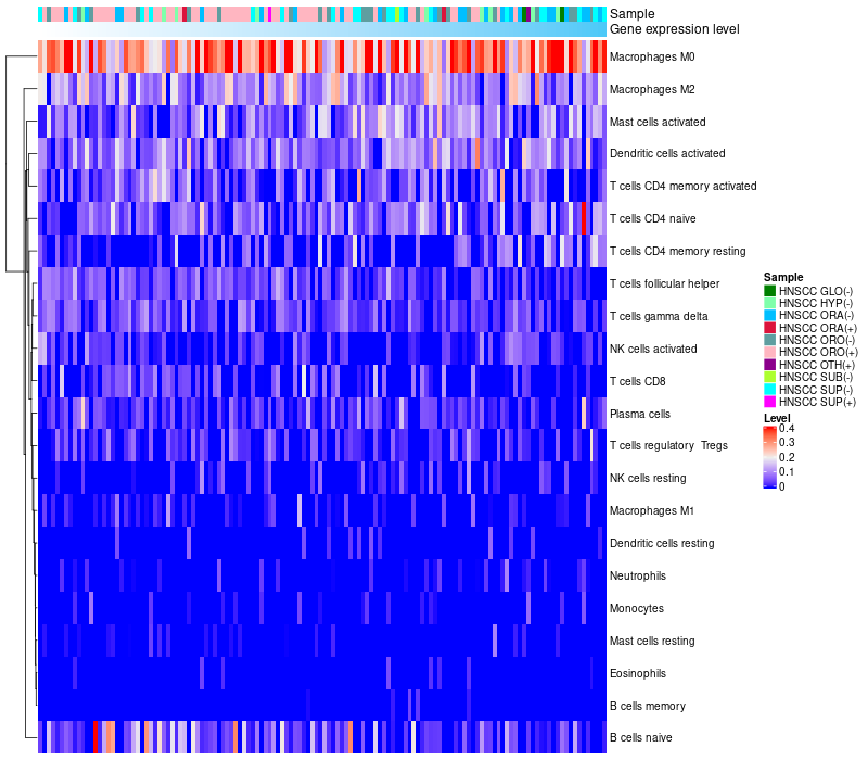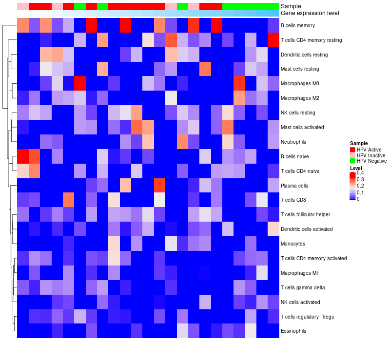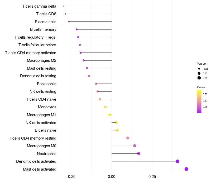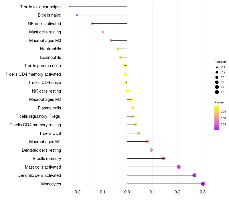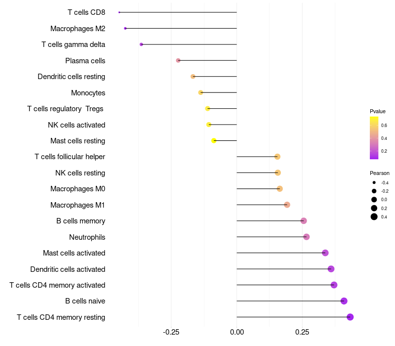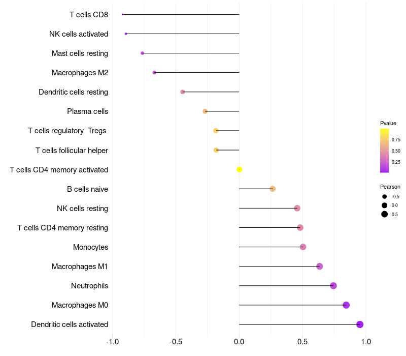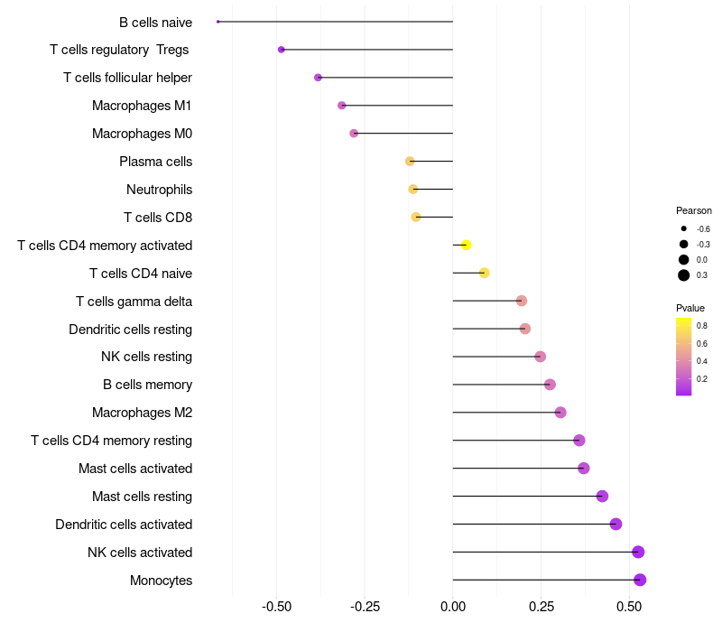 Lollipop of EBNA1BP2 expression and immune infiltrating cell level correlation result in HPV+ samples