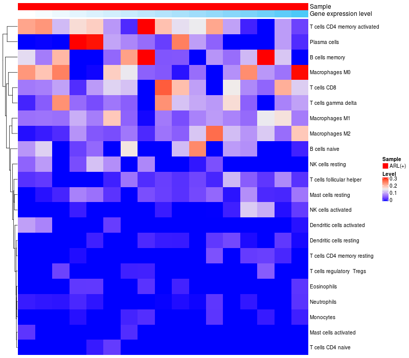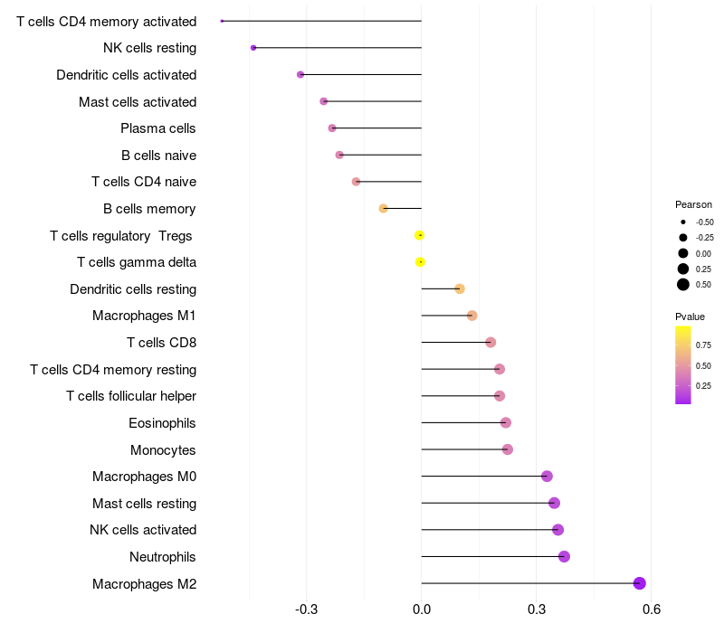 Relationship between gene expression and immune infiltrating cell level