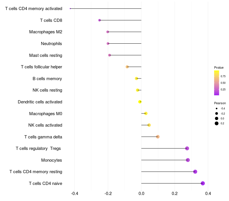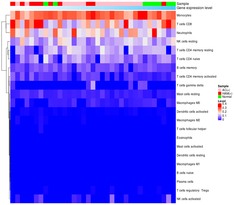 Relationship between gene expression and immune infiltrating cell level