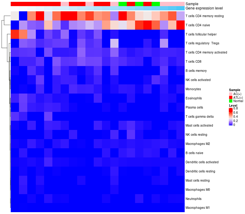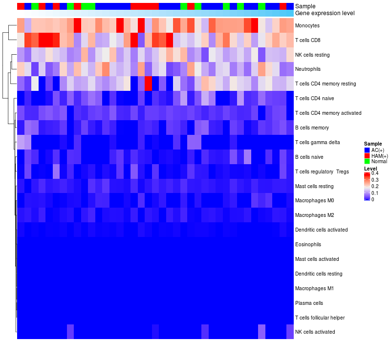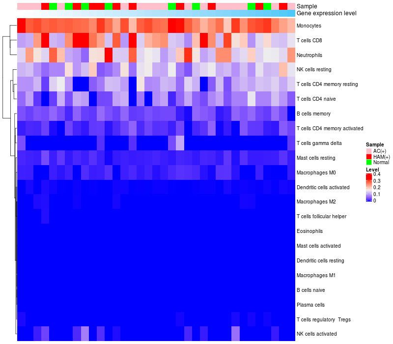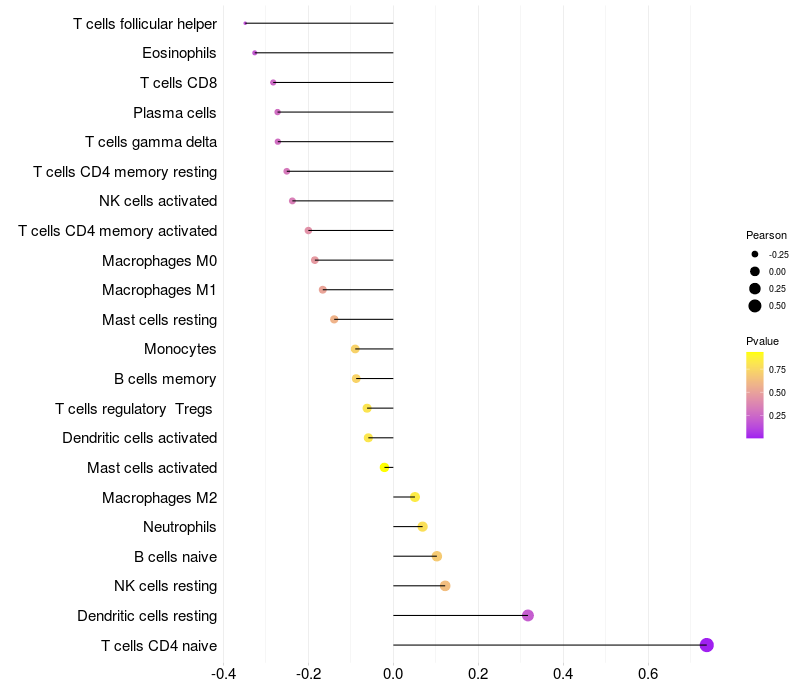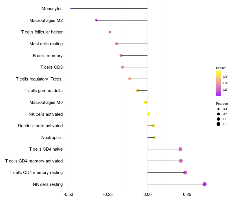 Relationship between gene expression and immune infiltrating cell level