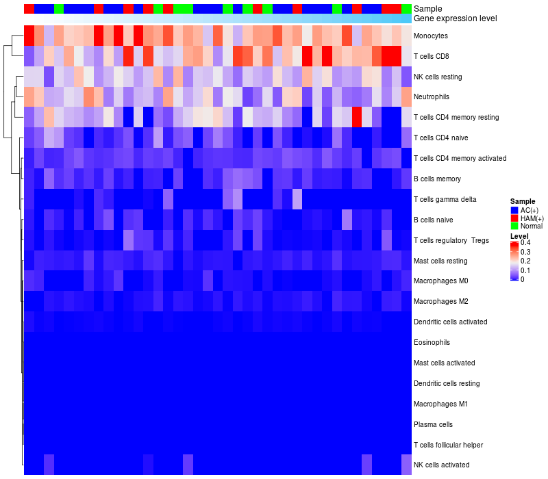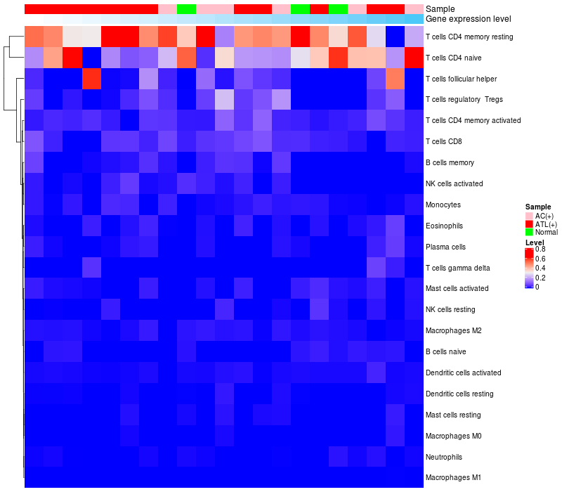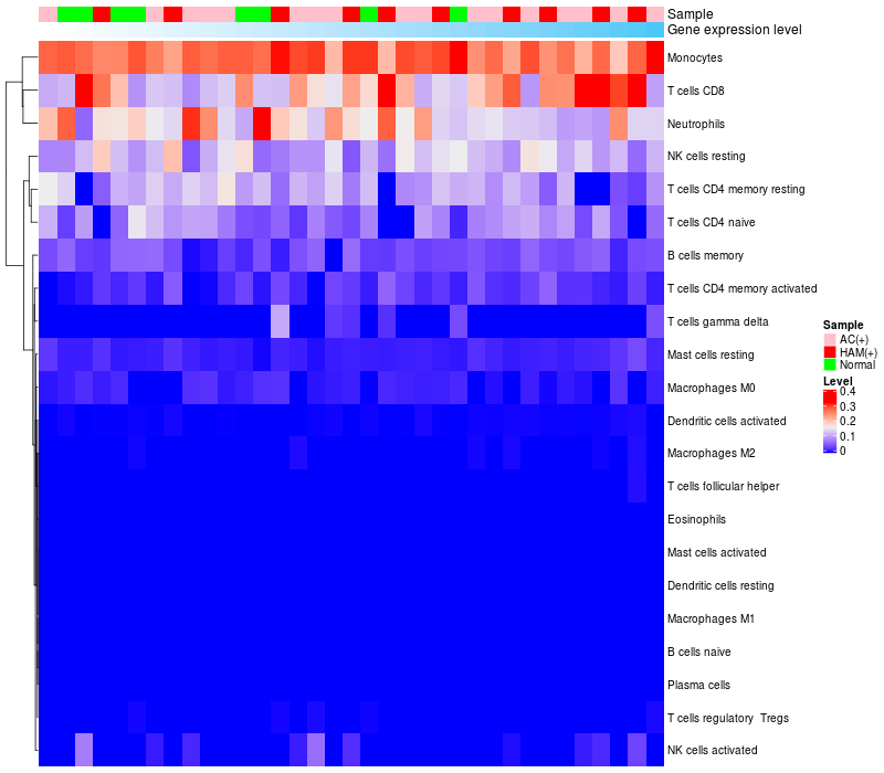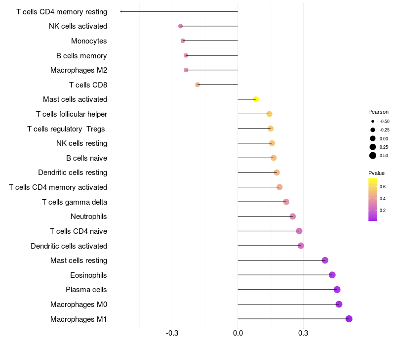 Lollipop of EDARADD expression and immune infiltrating cell level correlation result in HTLV1+ samples