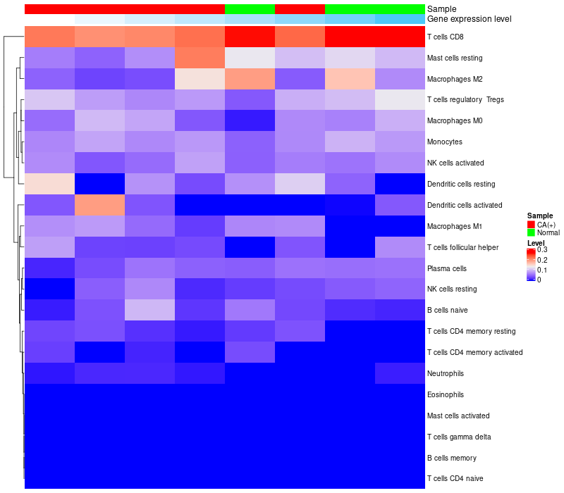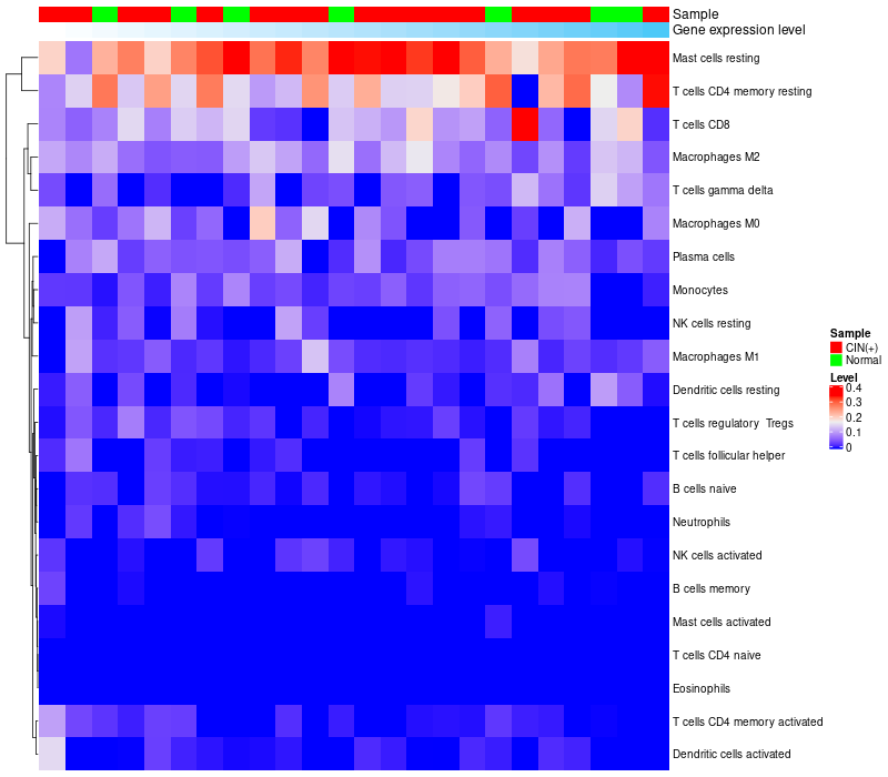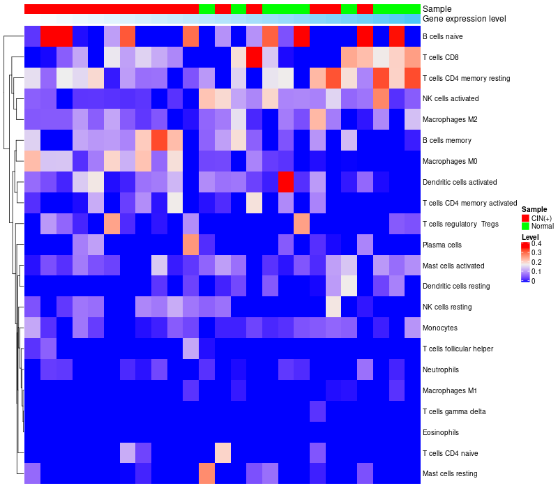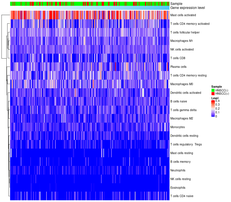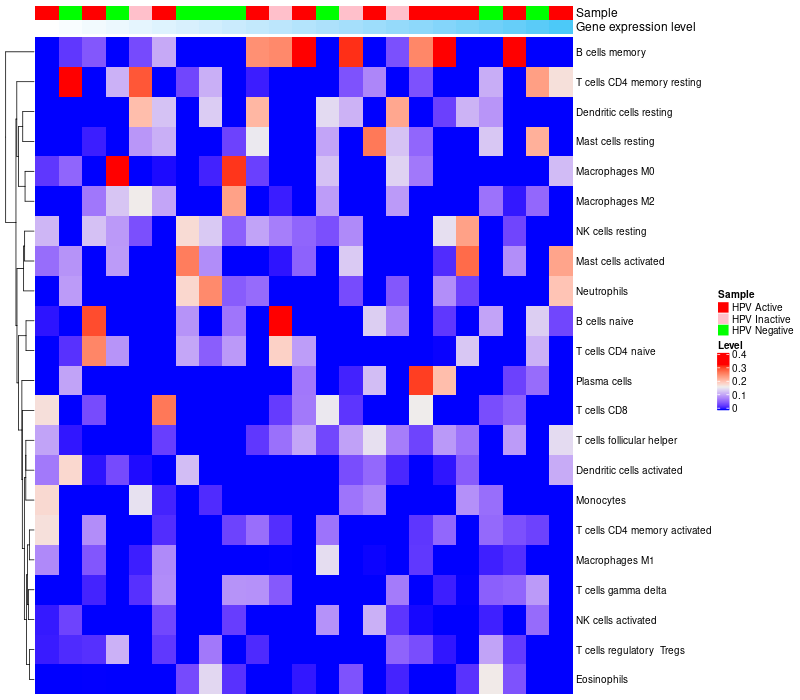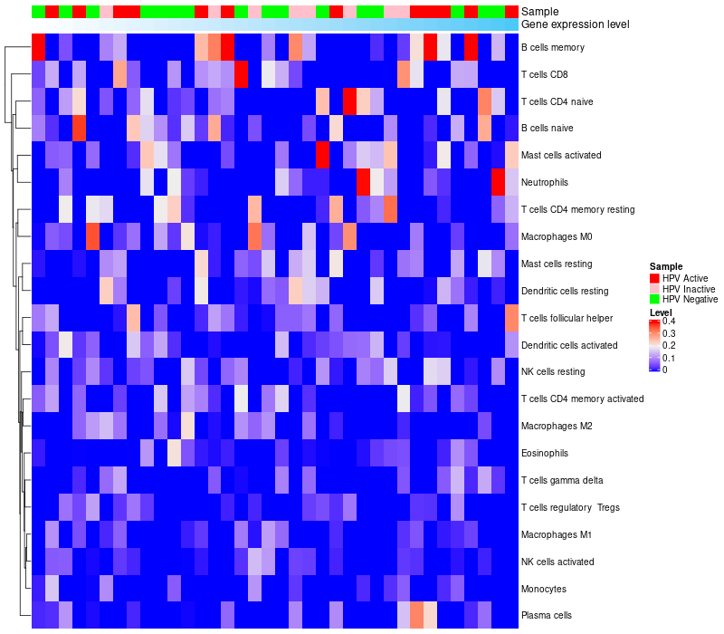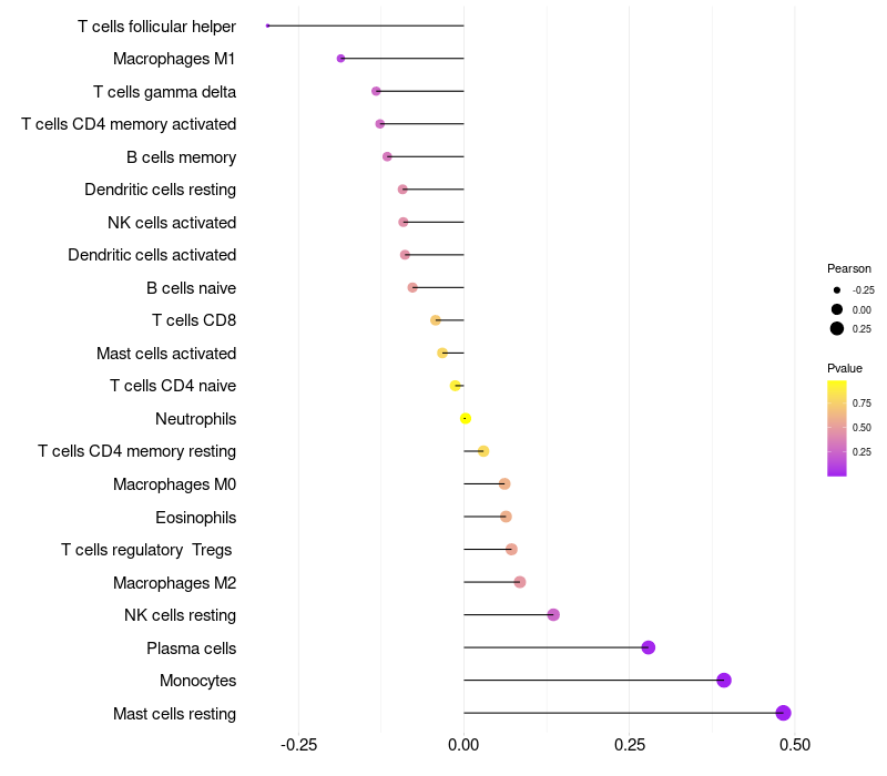 Lollipop of EDN3 expression and immune infiltrating cell level correlation result in HPV+ samples