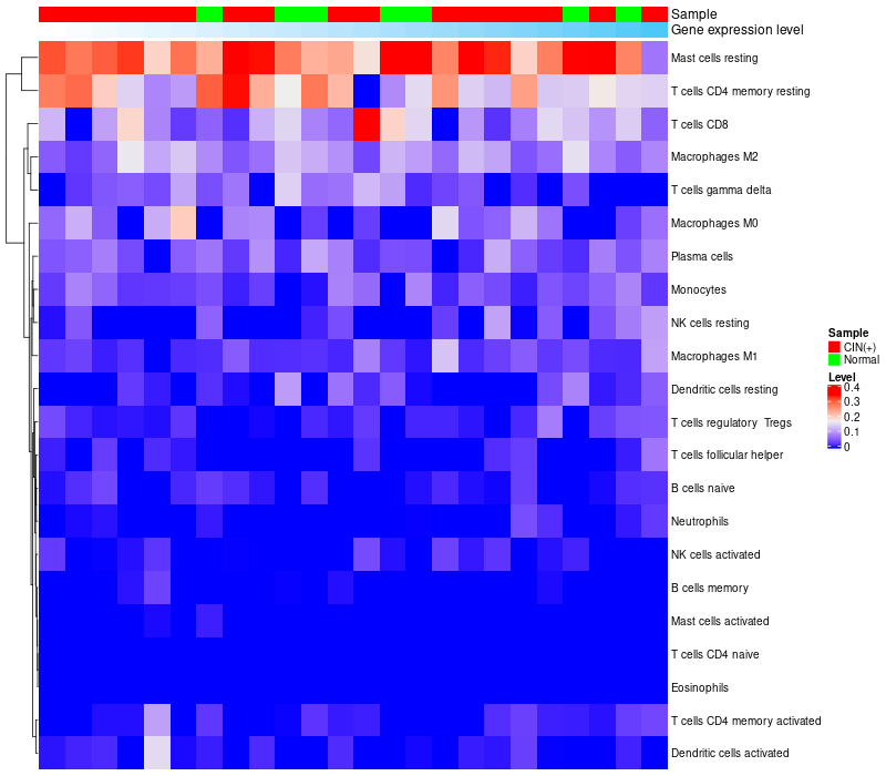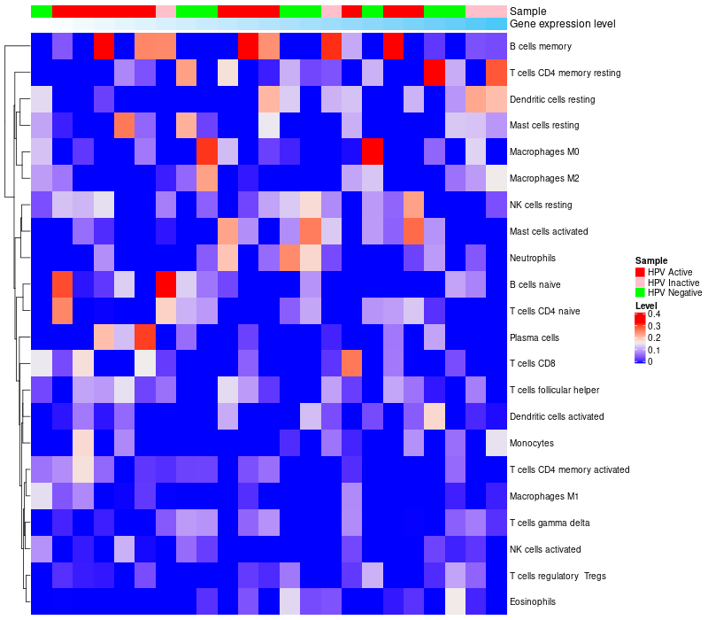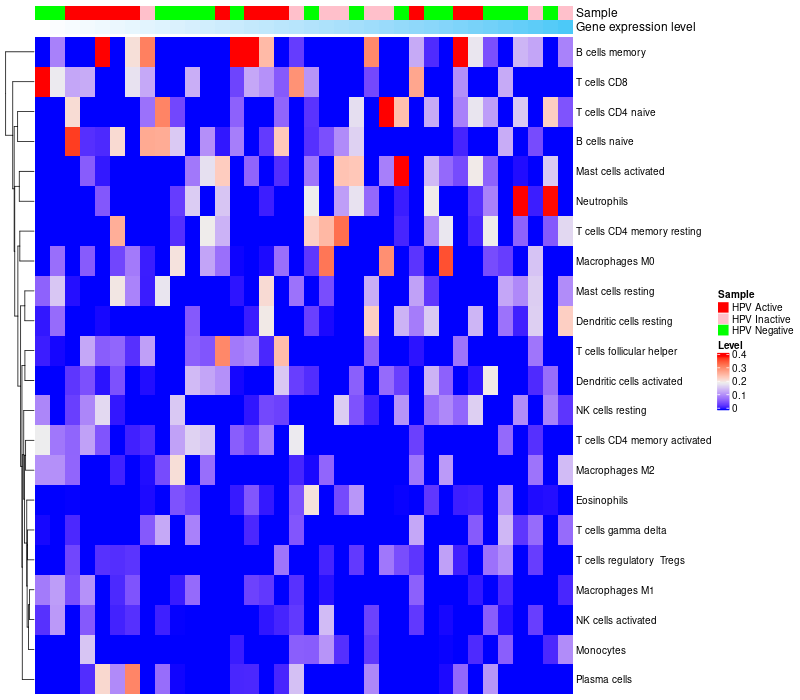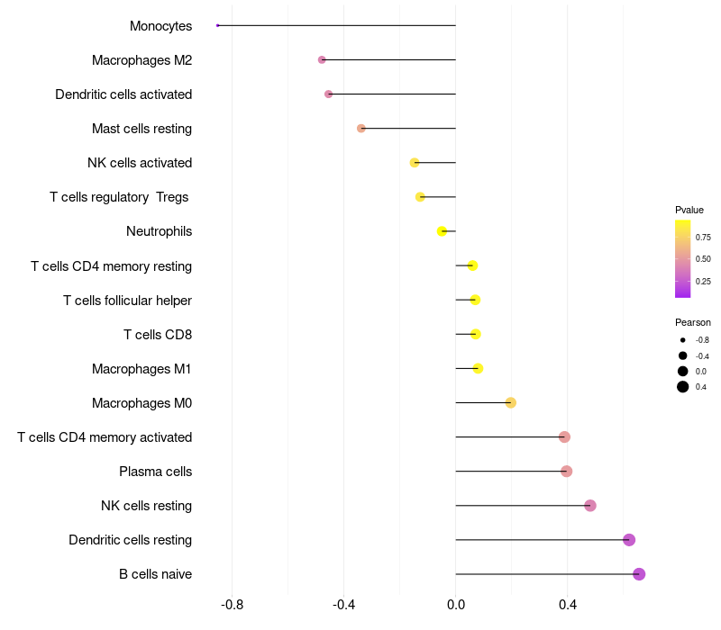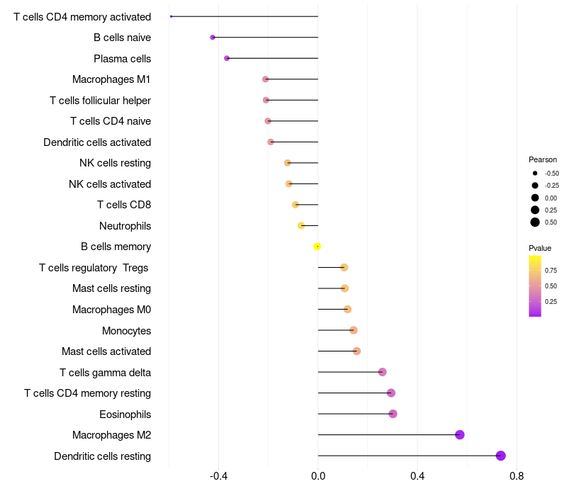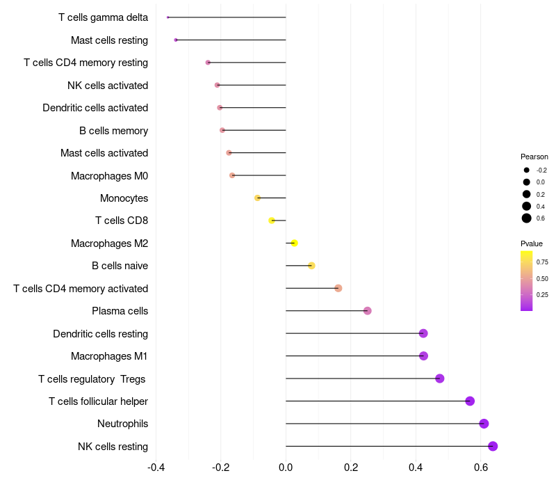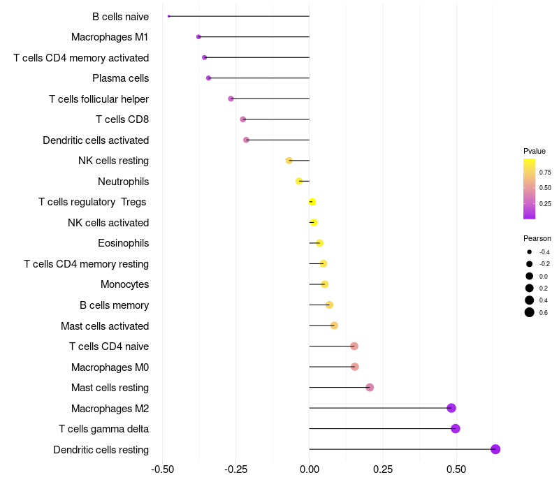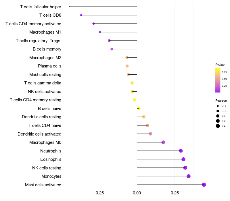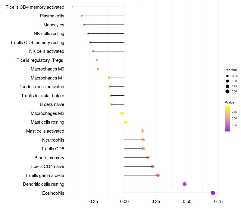 Lollipop of EEF1A2 expression and immune infiltrating cell level correlation result in HPV+ samples