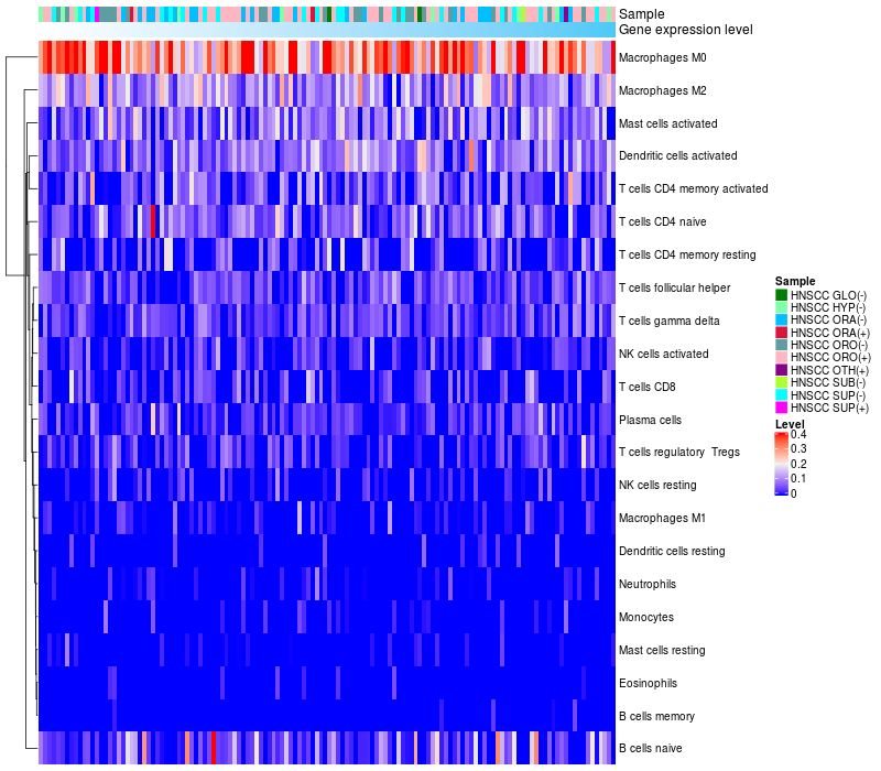 Head and neck Squamous cell carcinomas GLOTTIC LARYNX (EBV-)(2), Head and neck Squamous cell carcinomas HYPOPHARYNX (EBV-)(9), Head and neck Squamous cell carcinomas ORAL CAVITY (EBV-)(23), Head and neck Squamous cell carcinomas ORAL CAVITY (EBV+)(2), Head and neck Squamous cell carcinomas OROPHARYNX (EBV-)(22), Head and neck Squamous cell carcinomas OROPHARYNX (EBV+)(54), Head and neck Squamous cell carcinomas OTHER (EBV+)(1), Head and neck Squamous cell carcinomas SUBGLOTTIC LARYNX (EBV-)(1), Head and neck Squamous cell carcinomas SUPRAGLOTTIC (EBV-)(19), Squamous cell carcinomas SUPRAGLOTTIC (EBV+)(1) |