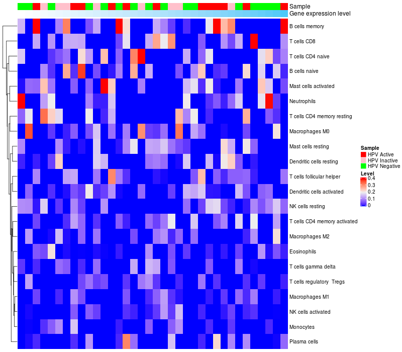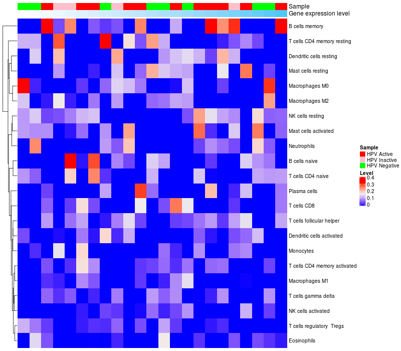 Oropharyngeal cancers HPV Active (12), Oropharyngeal cancers HPV Inactive (8), Oropharyngeal cancers HPV Negative (16) |