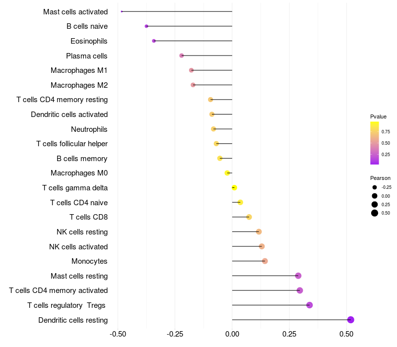 Relationship between gene expression and immune infiltrating cell level