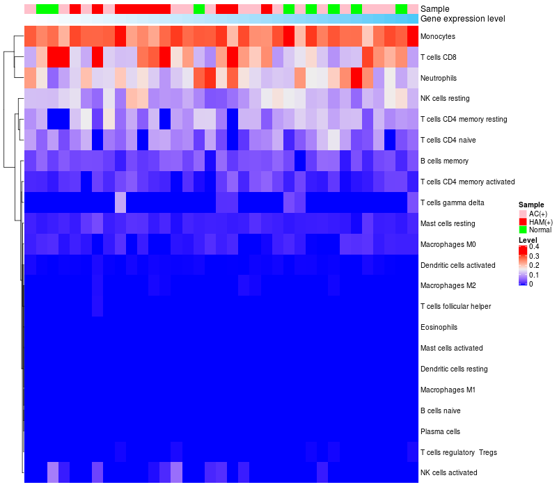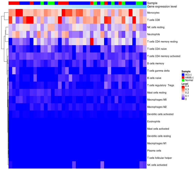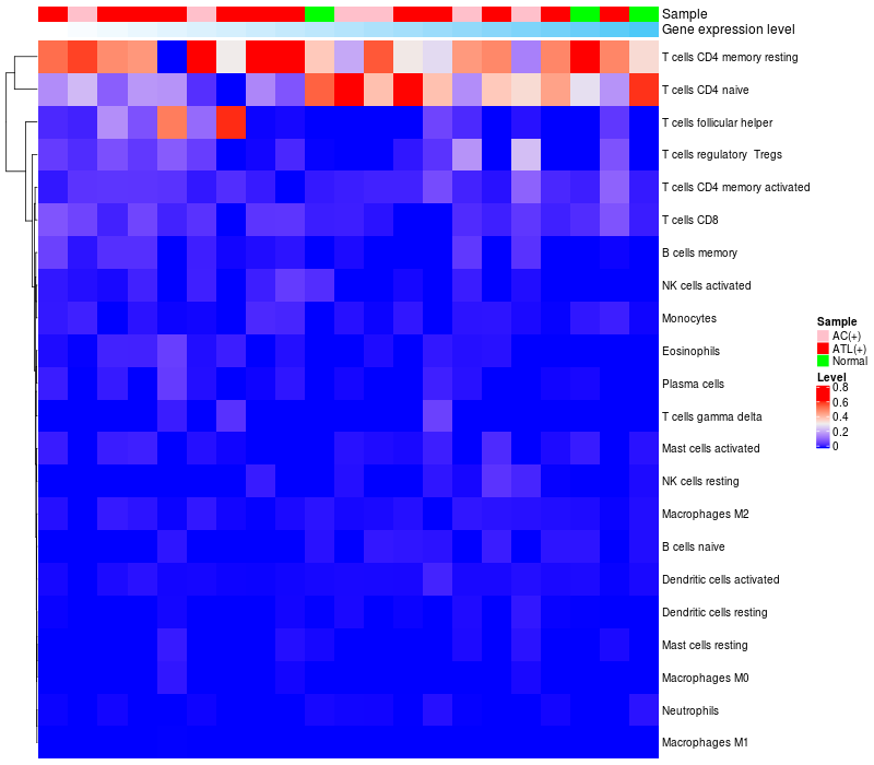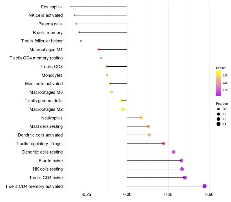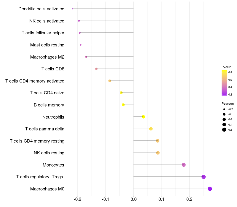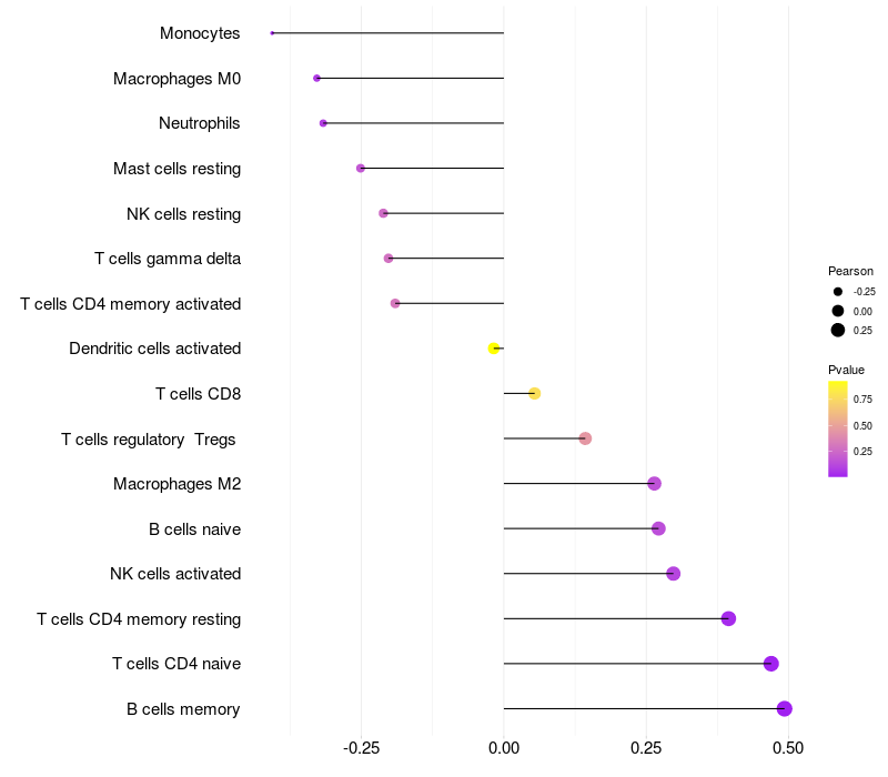 Lollipop of EFHD1 expression and immune infiltrating cell level correlation result in HTLV1+ samples