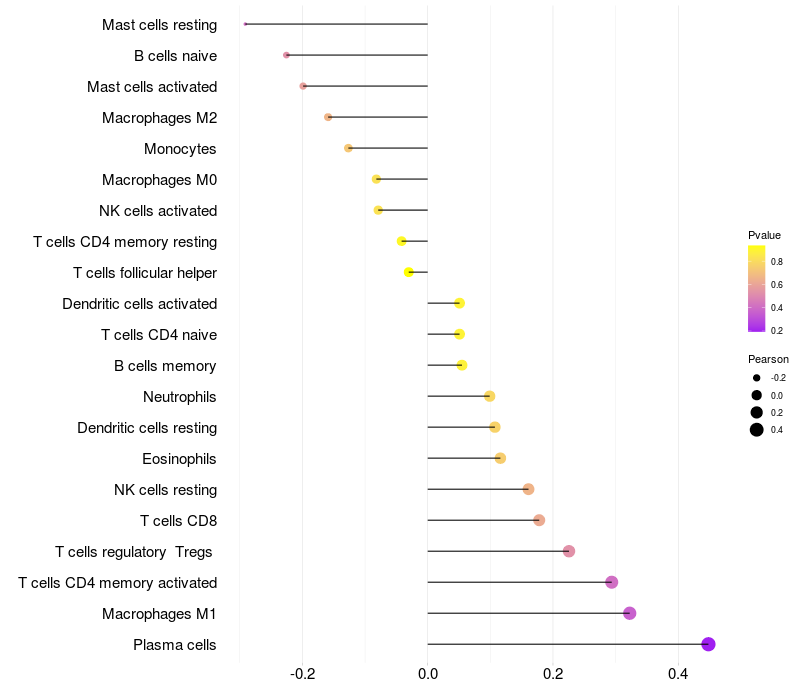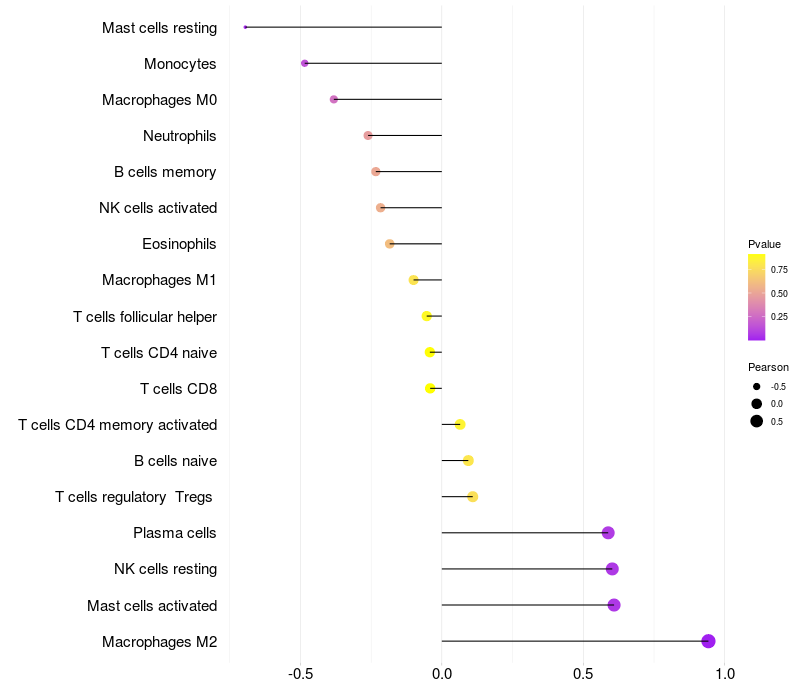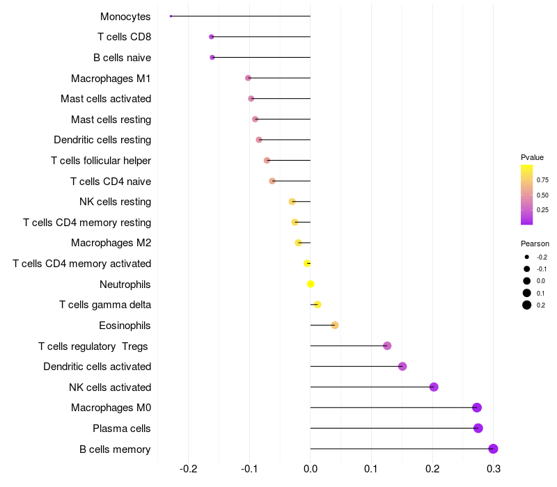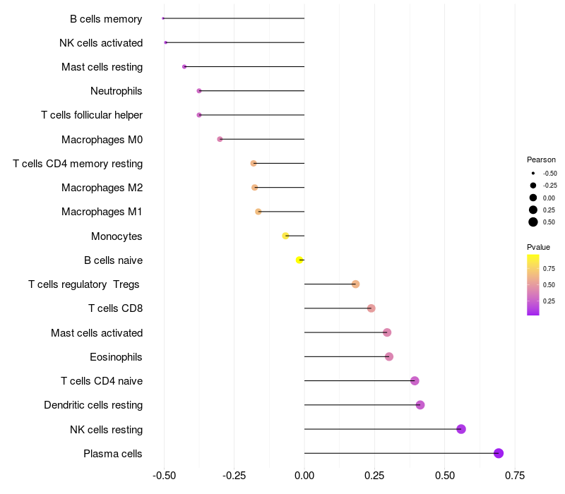 Lollipop of EFNA5 expression and immune infiltrating cell level correlation result in HBV+ Liver cirrhosis samples