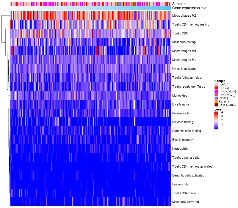 Relationship between gene expression and immune infiltrating cell level