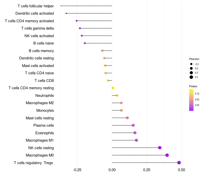 HeatMap of cell type fractions in all samples Lollipop of EFR3B expression and immune infiltrating cell level correlation result in HPV+ samples