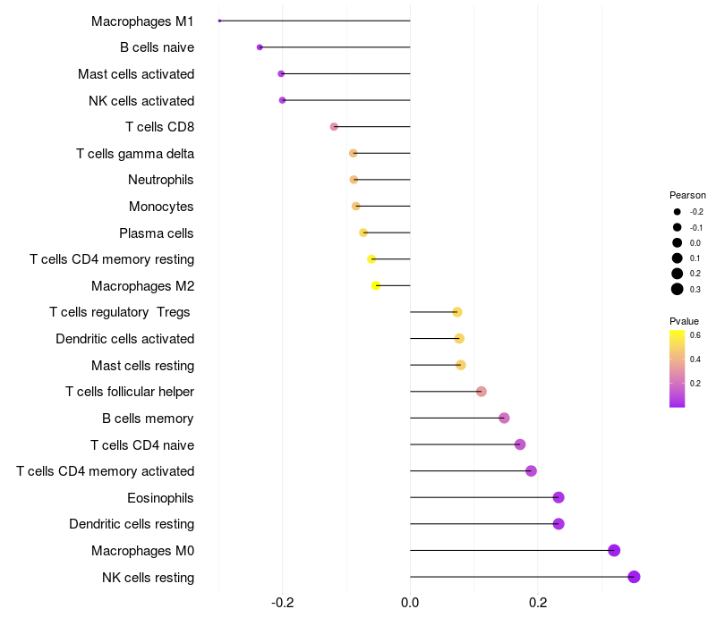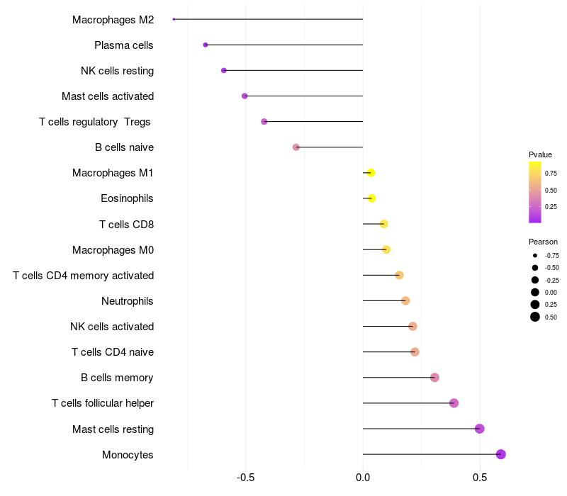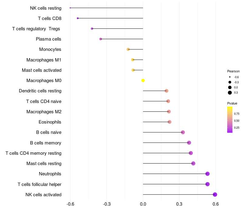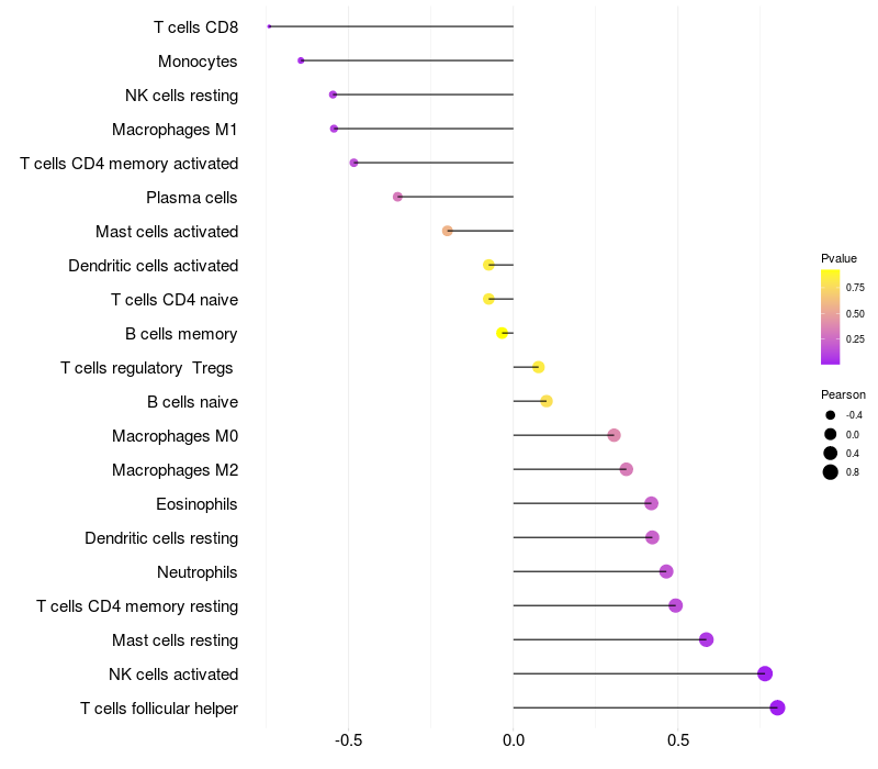 Lollipop of EFTUD2 expression and immune infiltrating cell level correlation result in HBV+ Liver cirrhosis samples