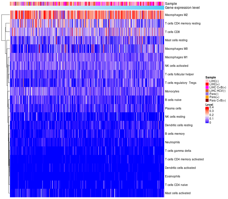 Relationship between gene expression and immune infiltrating cell level