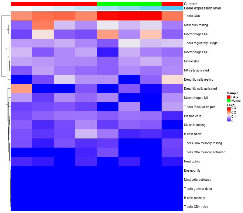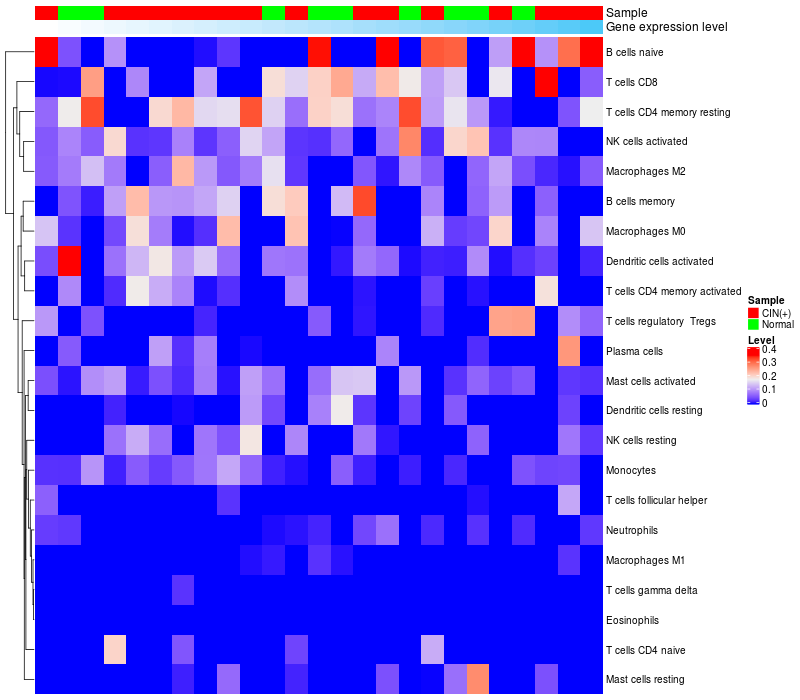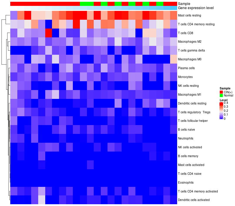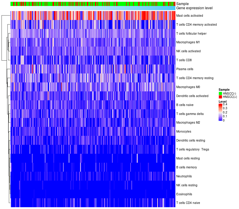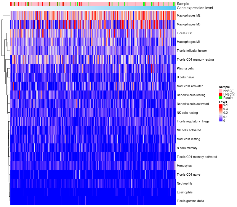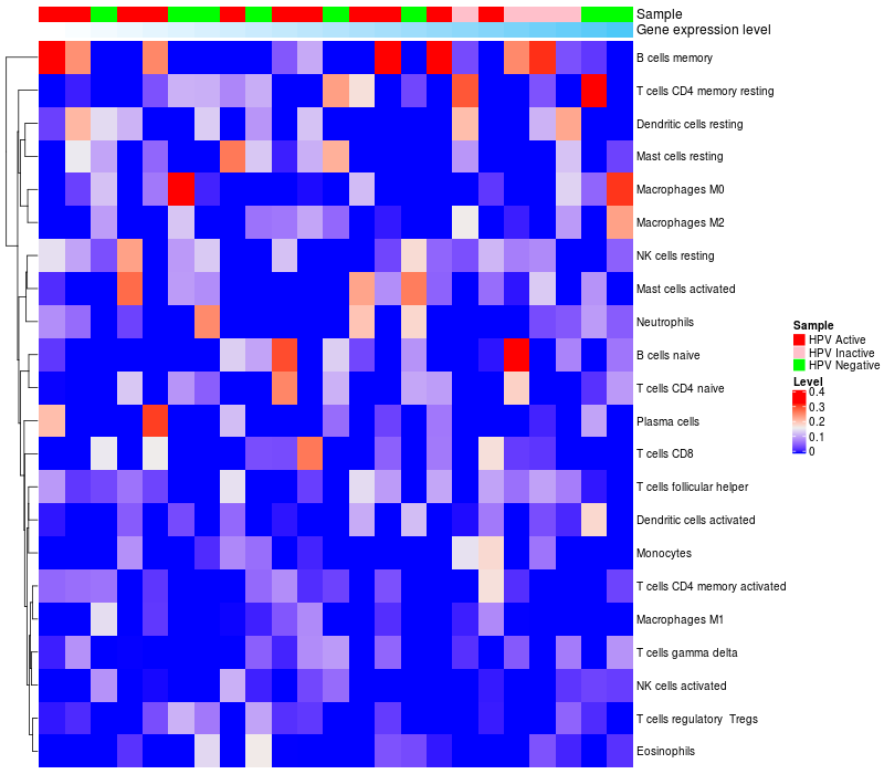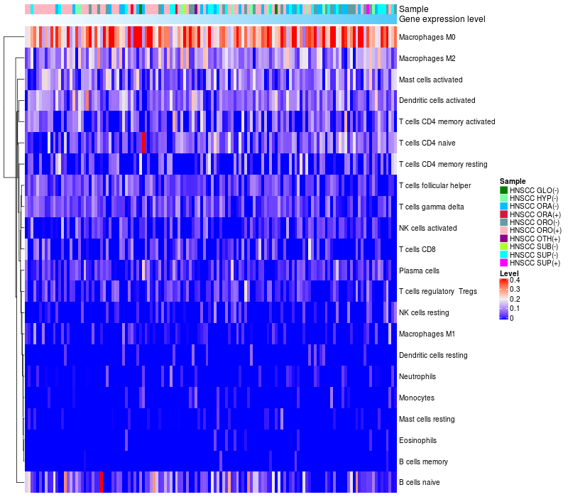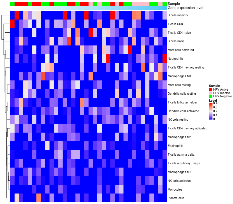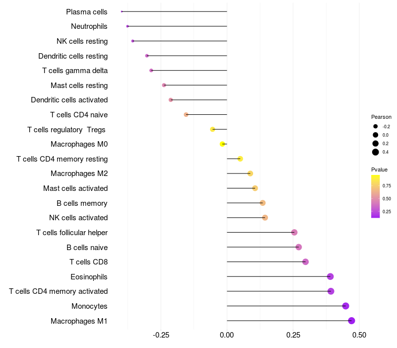 Lollipop of EGFL7 expression and immune infiltrating cell level correlation result in HPV+ samples