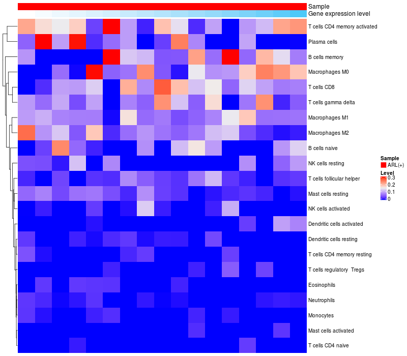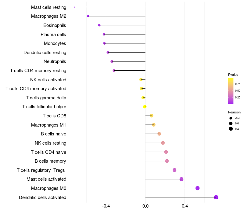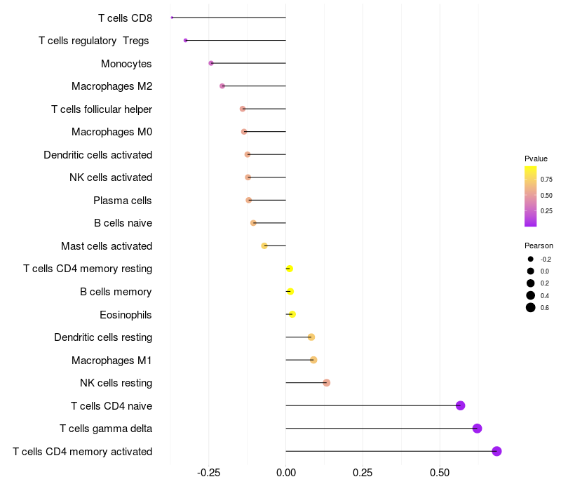 Relationship between gene expression and immune infiltrating cell level