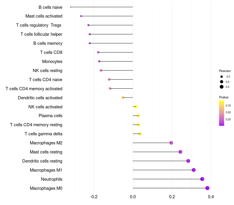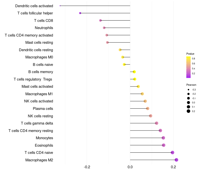 HeatMap of cell type fractions in all samples Lollipop of EHD2 expression and immune infiltrating cell level correlation result in HPV+ samples
