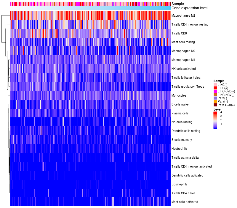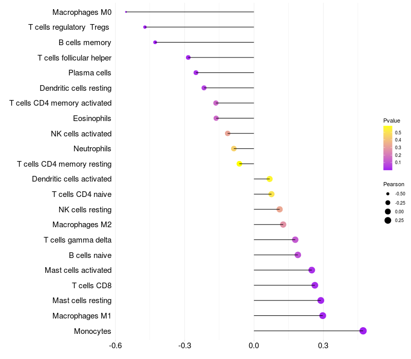 Relationship between gene expression and immune infiltrating cell level