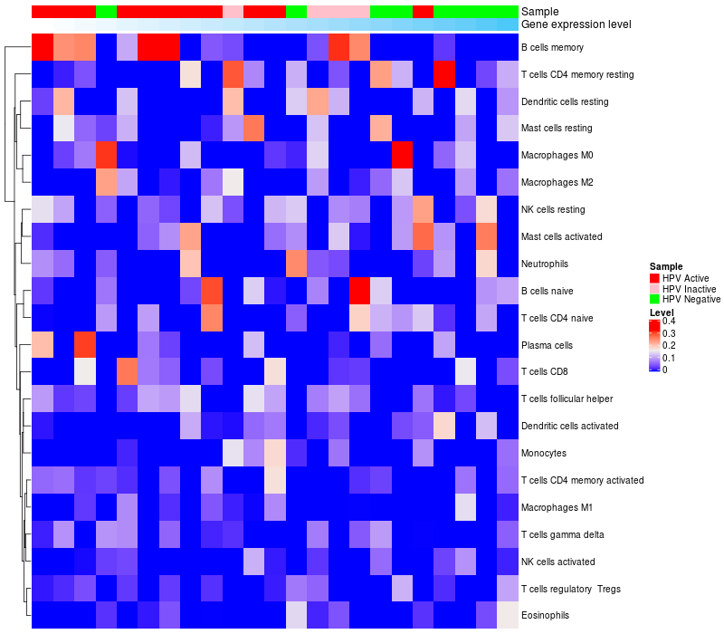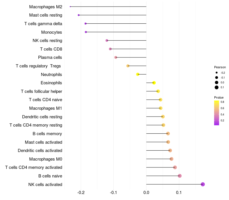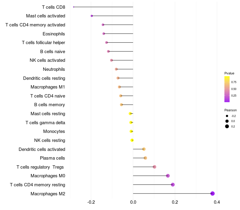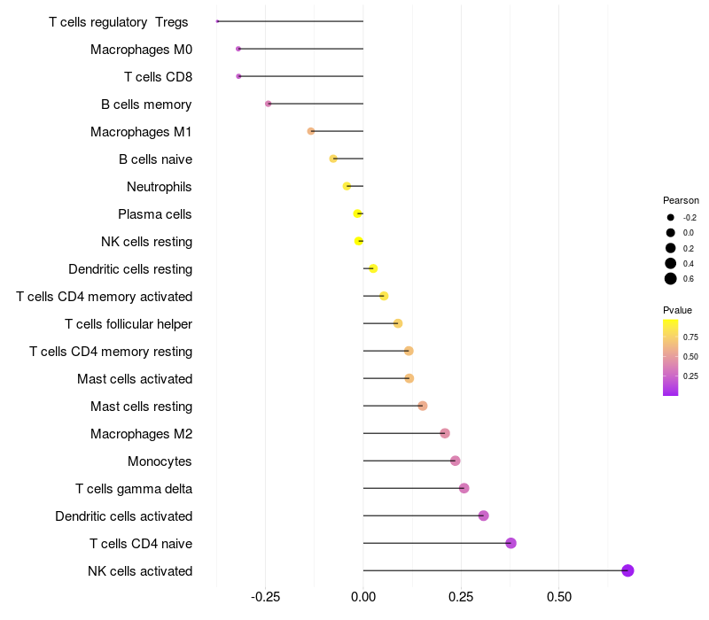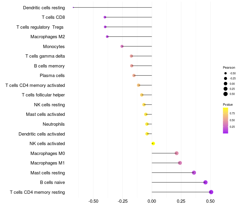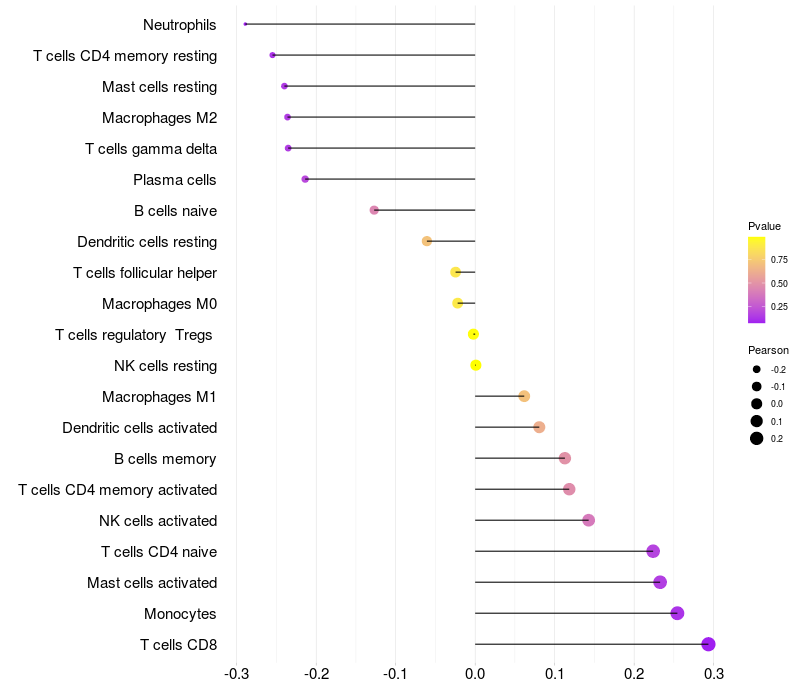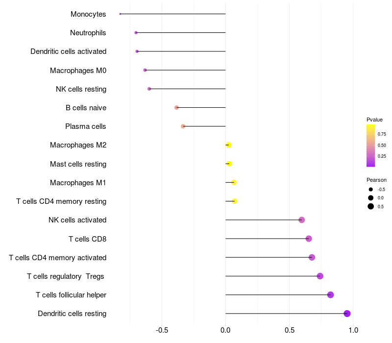 Lollipop of EID2 expression and immune infiltrating cell level correlation result in HPV+ samples