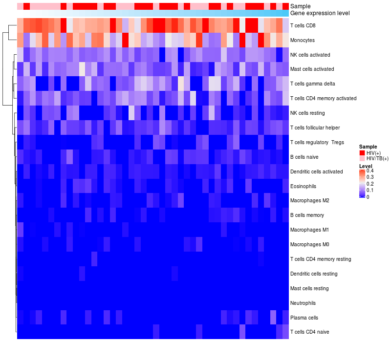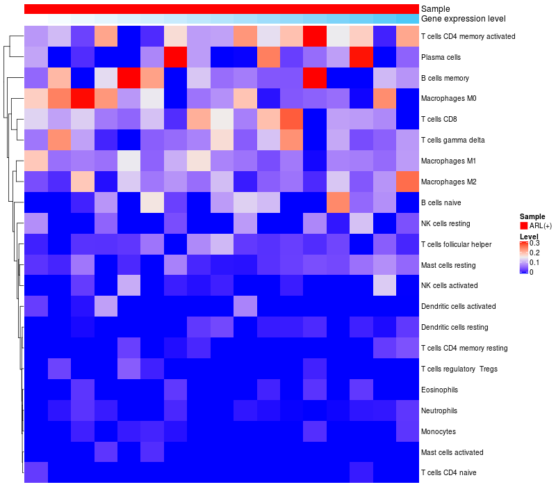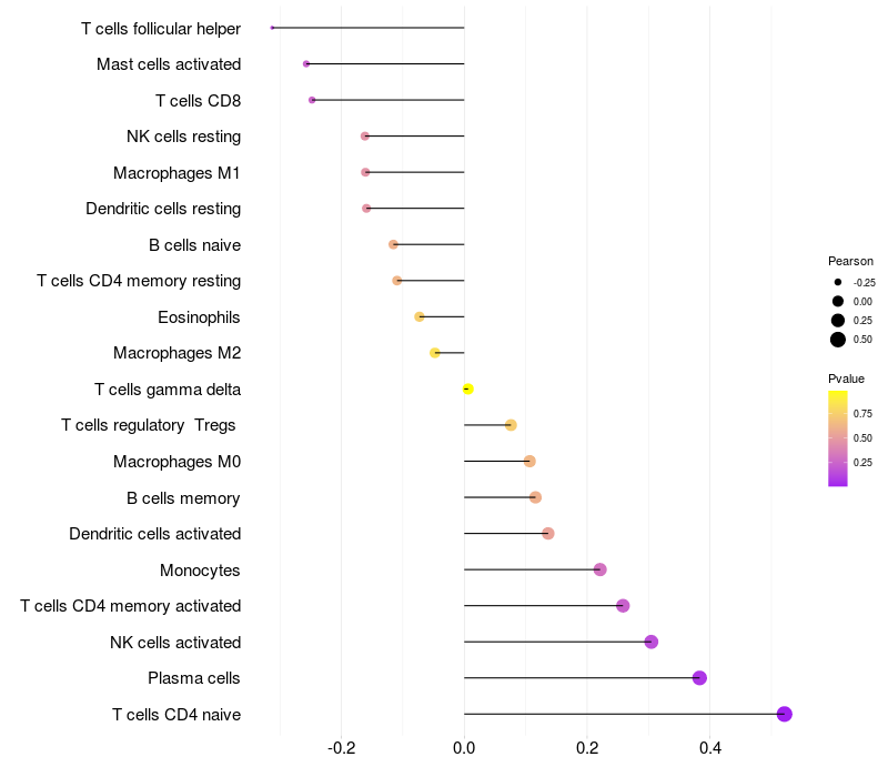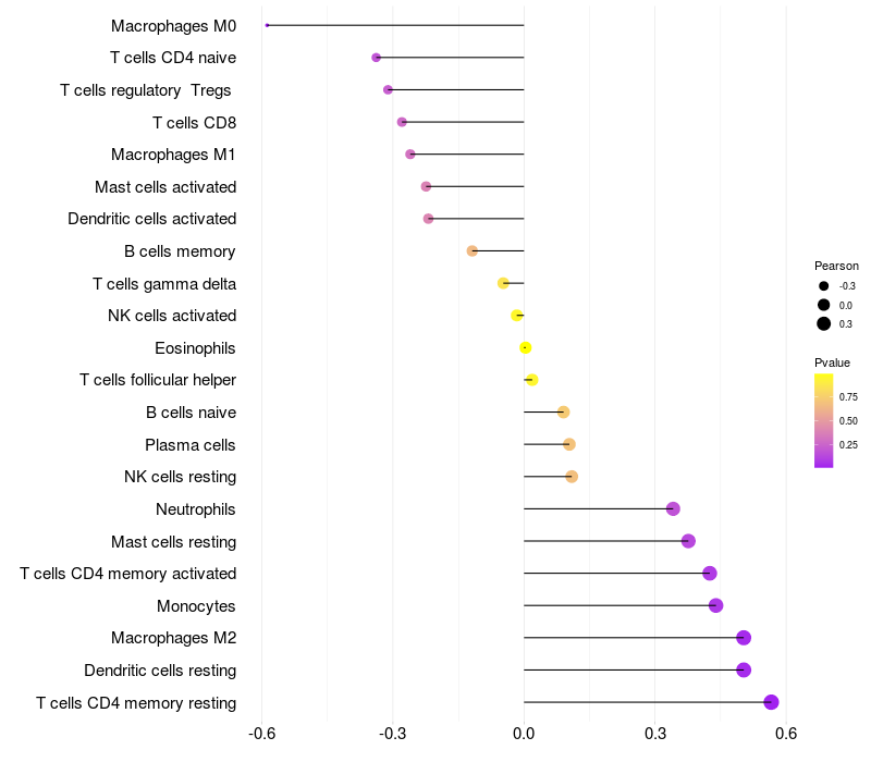 Relationship between gene expression and immune infiltrating cell level