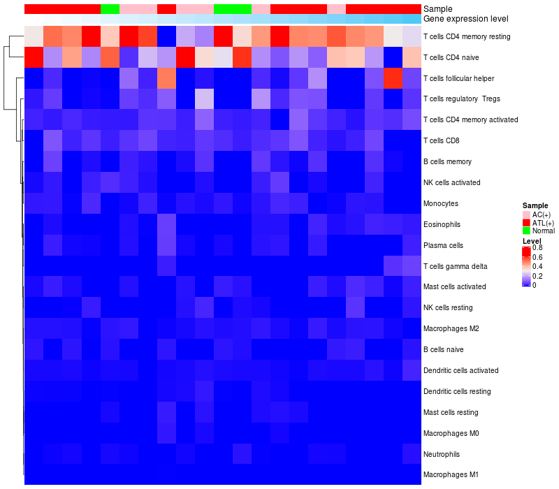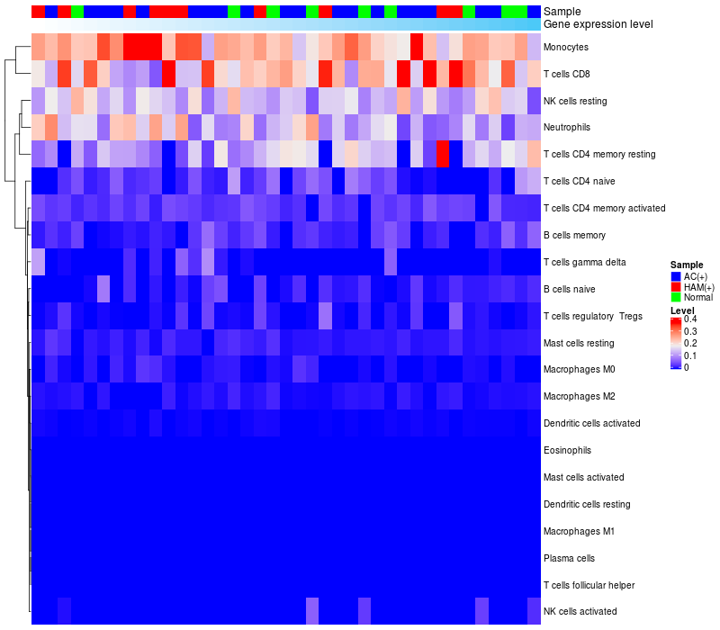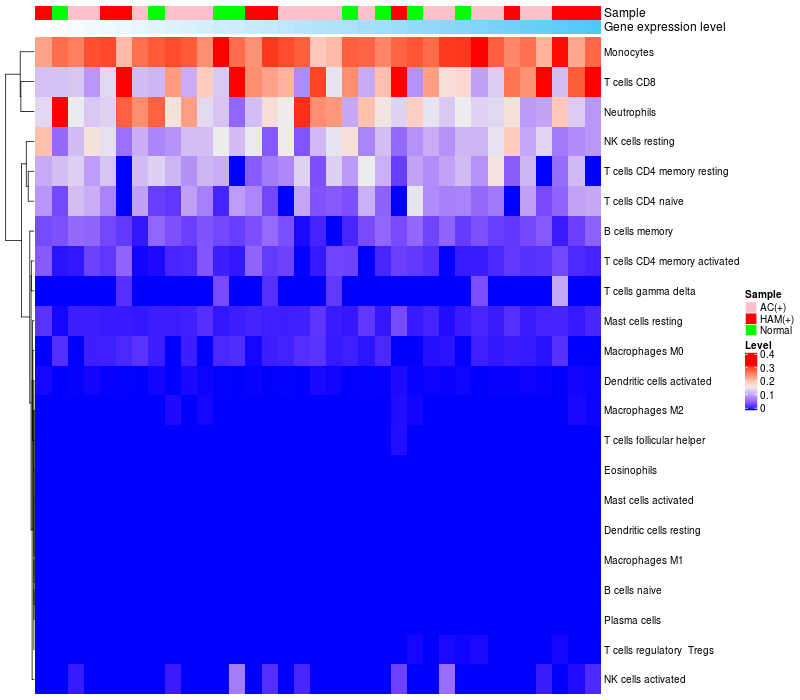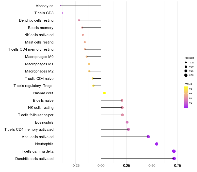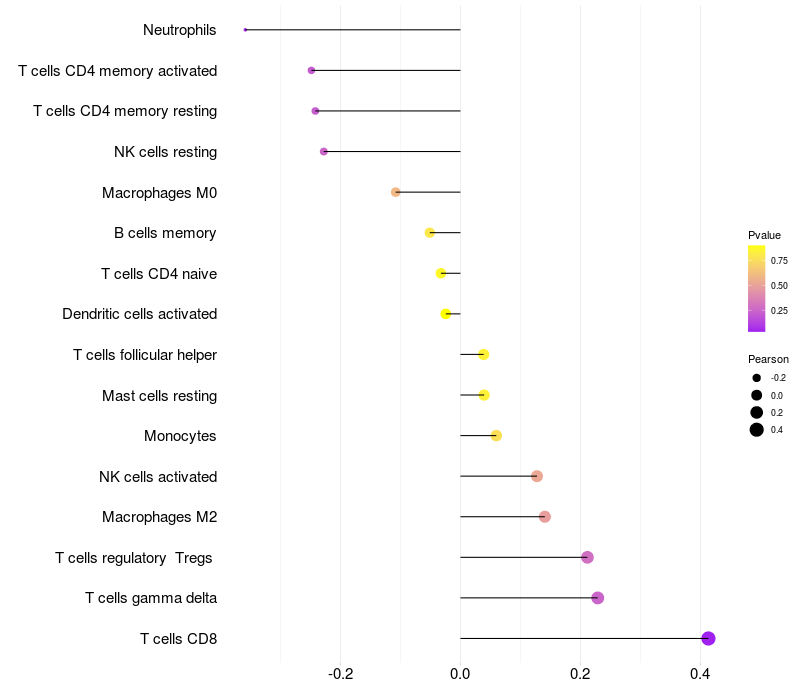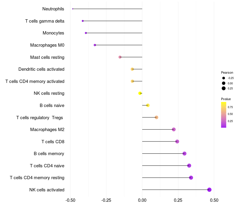 Relationship between gene expression and immune infiltrating cell level