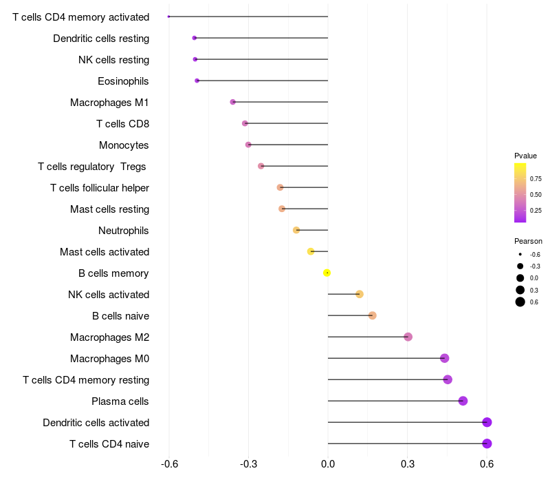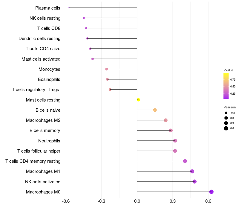 Lollipop of EIF4B expression and immune infiltrating cell level correlation result in HBV+ Liver cirrhosis samples