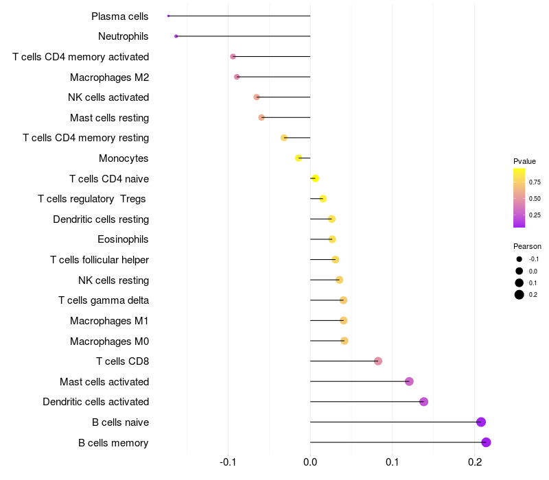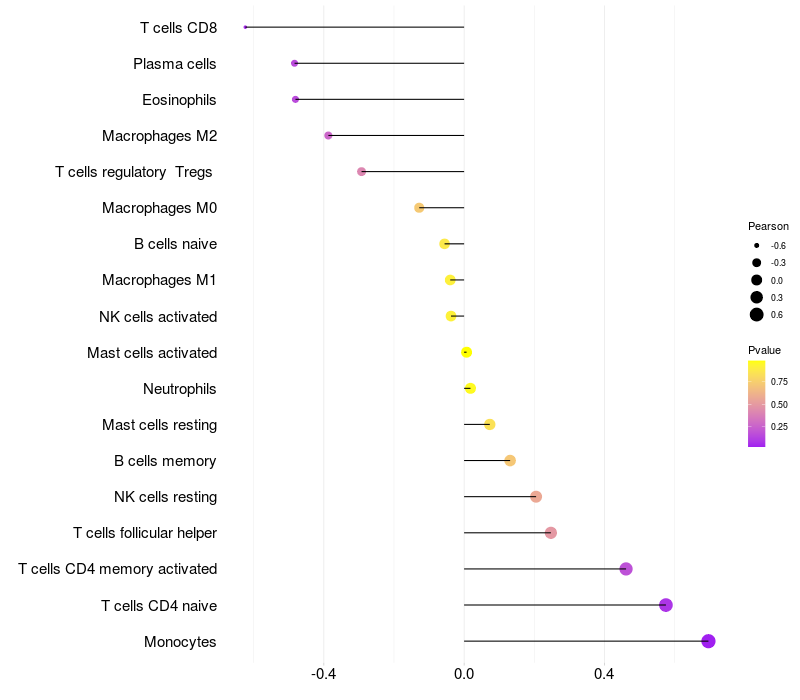 Lollipop of EIF4B expression and immune infiltrating cell level correlation result in HBV+ Chronic HBV (CHB) infection samples