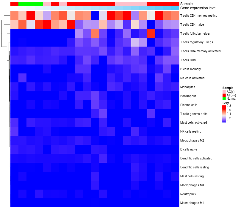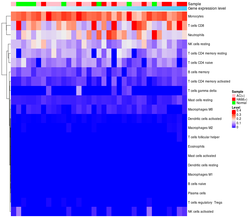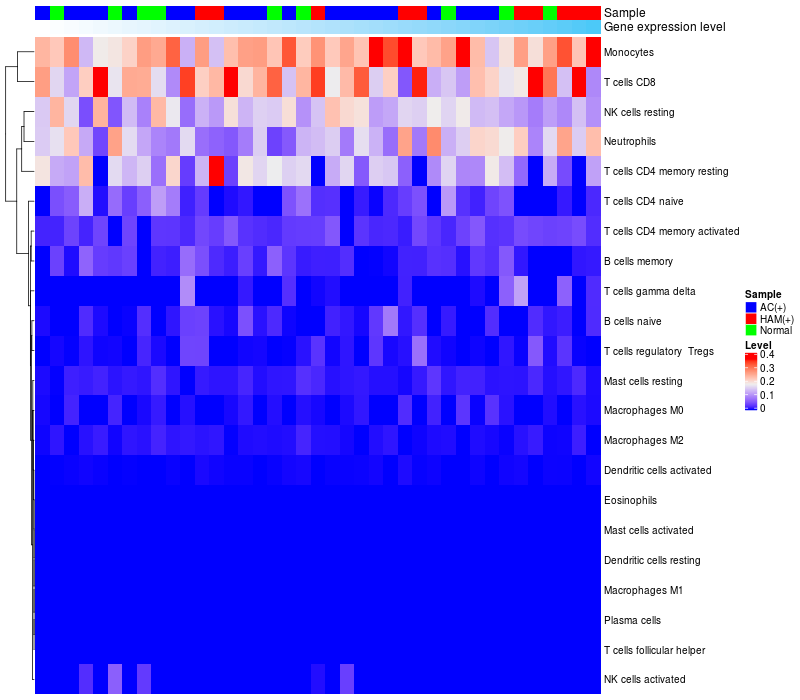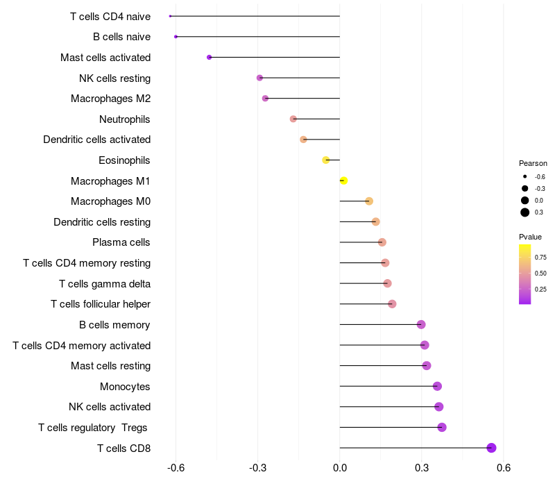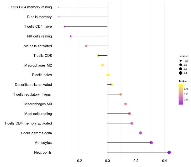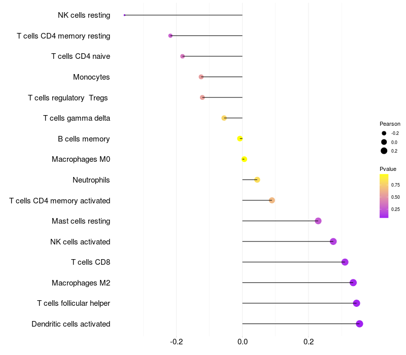 Lollipop of EIF4E3 expression and immune infiltrating cell level correlation result in HTLV1+ samples