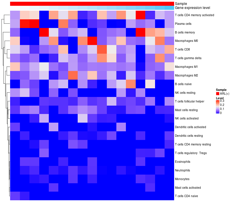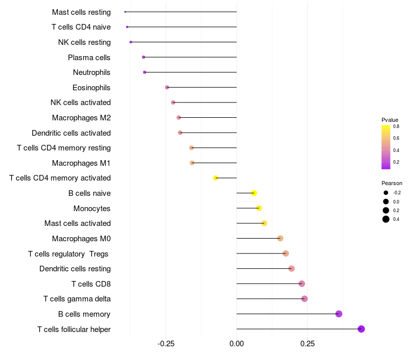 Relationship between gene expression and immune infiltrating cell level