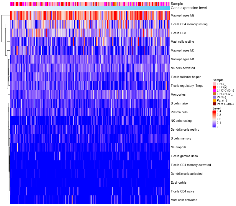 Relationship between gene expression and immune infiltrating cell level