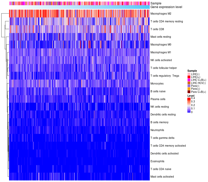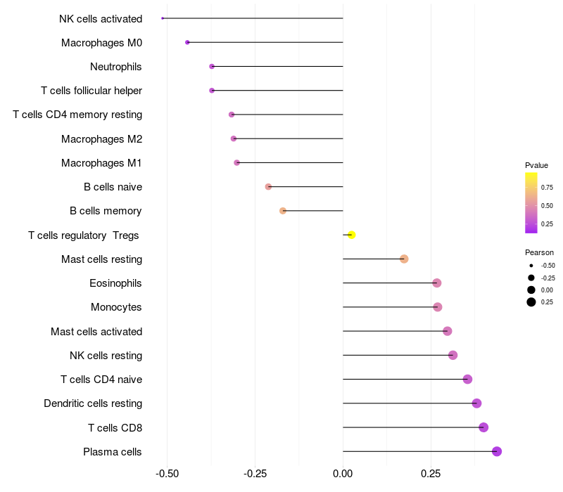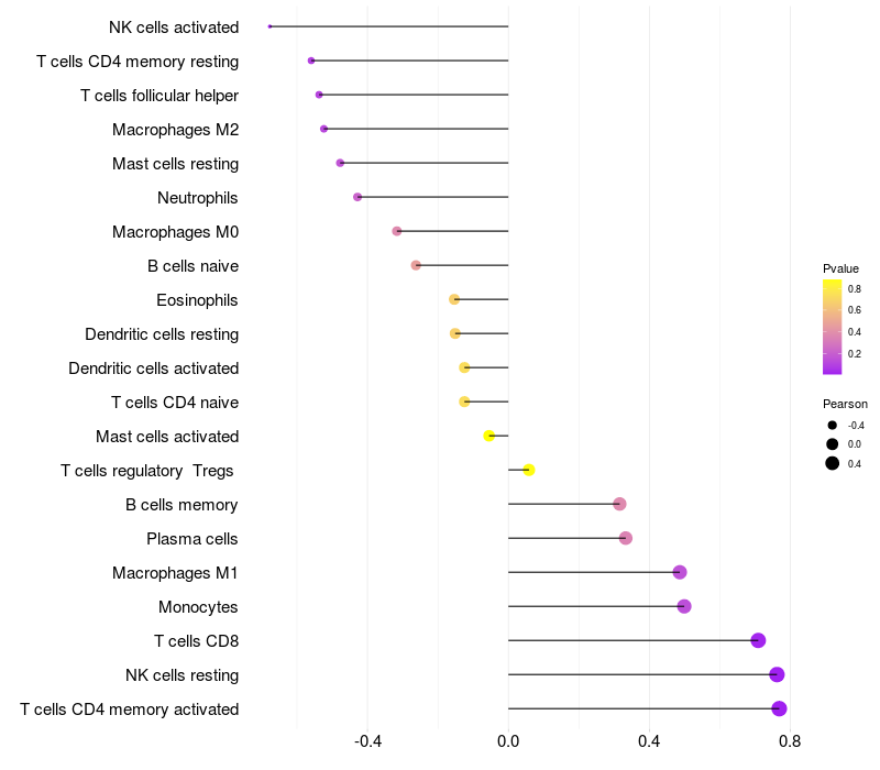Relationship between gene expression and immune infiltrating cell level