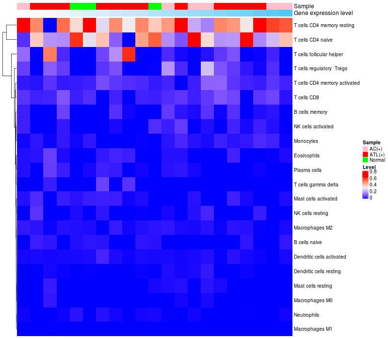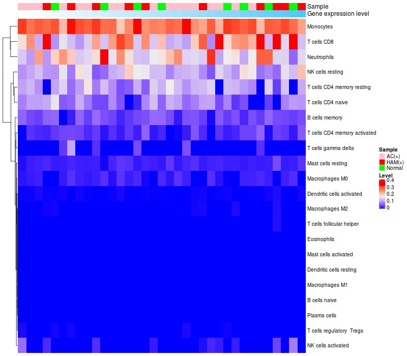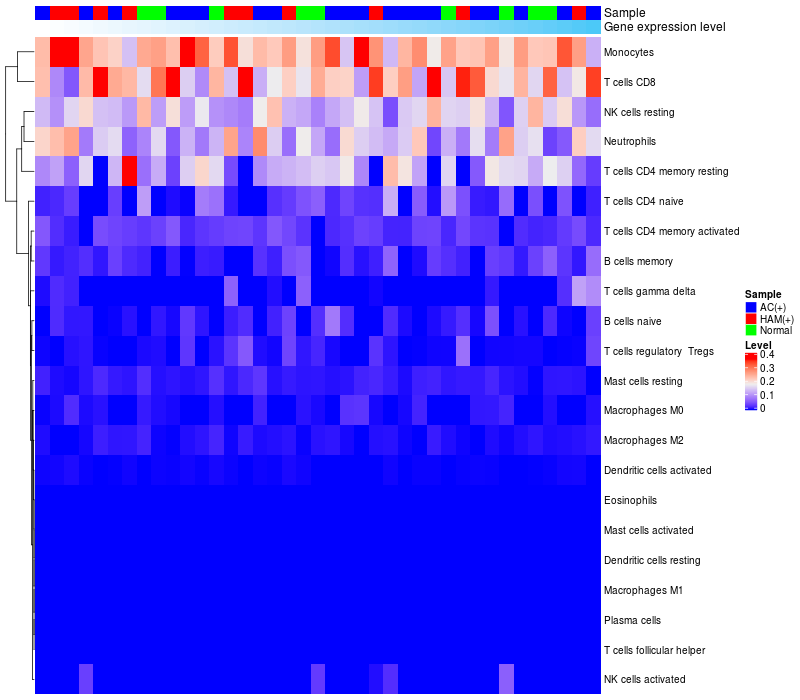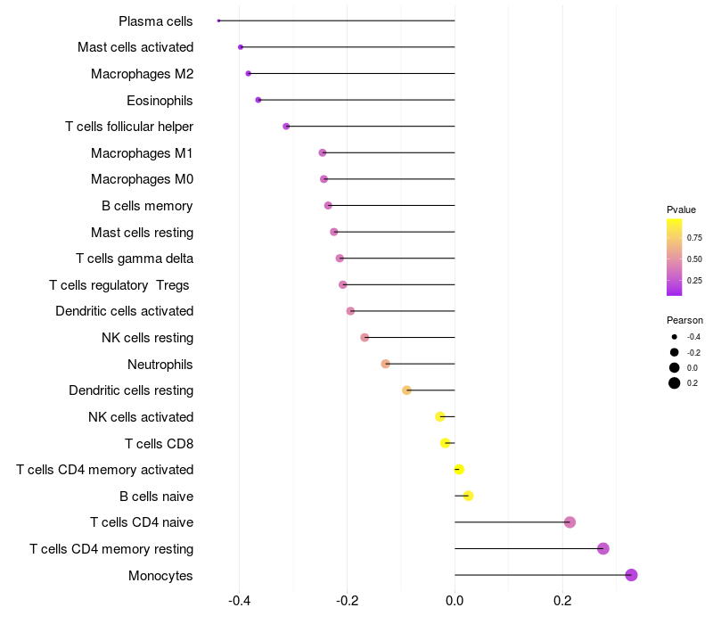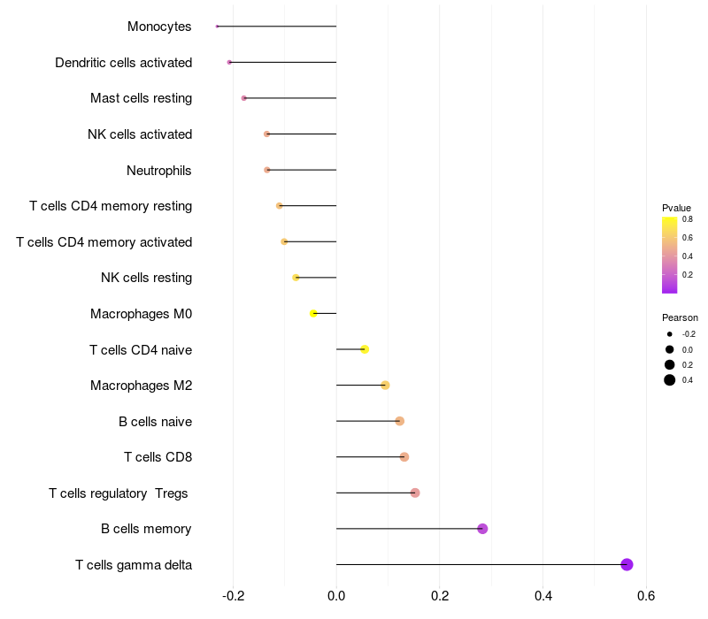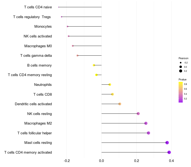 Lollipop of EN1 expression and immune infiltrating cell level correlation result in HTLV1+ samples