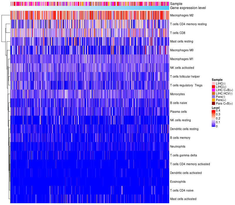 Liver hepatocellular carcinoma HCV (HBV+)(86), Liver hepatocellular carcinoma HCV (HBV-)(19), Liver hepatocellular carcinoma (HBV+)(209), Liver hepatocellular carcinoma (HBV+)(60), Paracancerous HCV (HBV+)(4), Paracancerous (HBV-)(28), Paracancerous (HBV+)(18) |